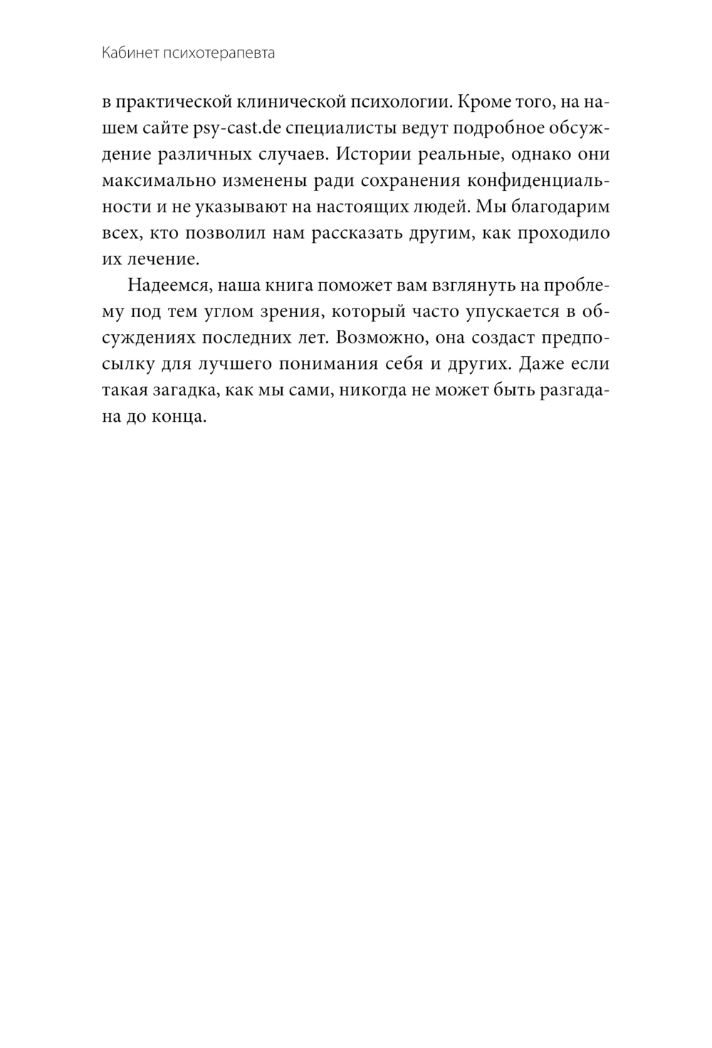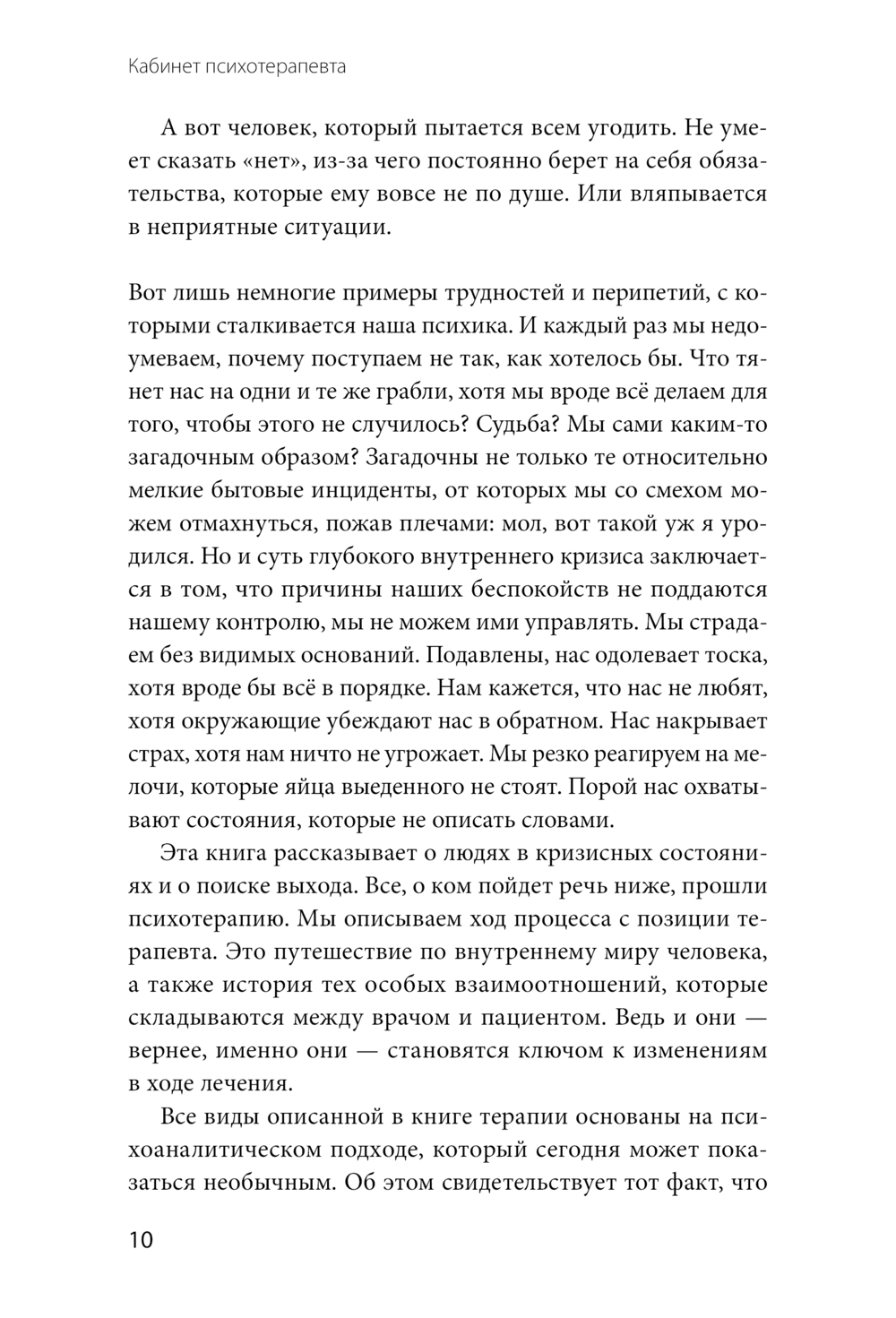 Эта книга – не учебник и не руководство, а честный и открытый разговор о том, что происходит в душе человека, пришедшего на прием. Авторы описывают настоящие случаи из практики (с измененными деталями для сохранения конфиденциальности), объясняя, как психоанализ помогает человеку разобраться в себе, преодолеть страхи и эмоциональные травмы.