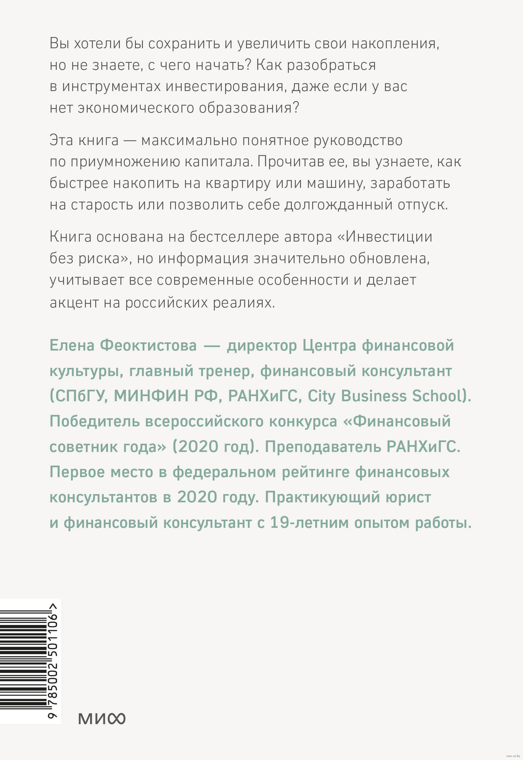 Книга основана на бестселлере автора "Инвестиции без риска", но информация значительно обновлена, в ней учтены все современные особенности и сделан акцент на российских реалиях.