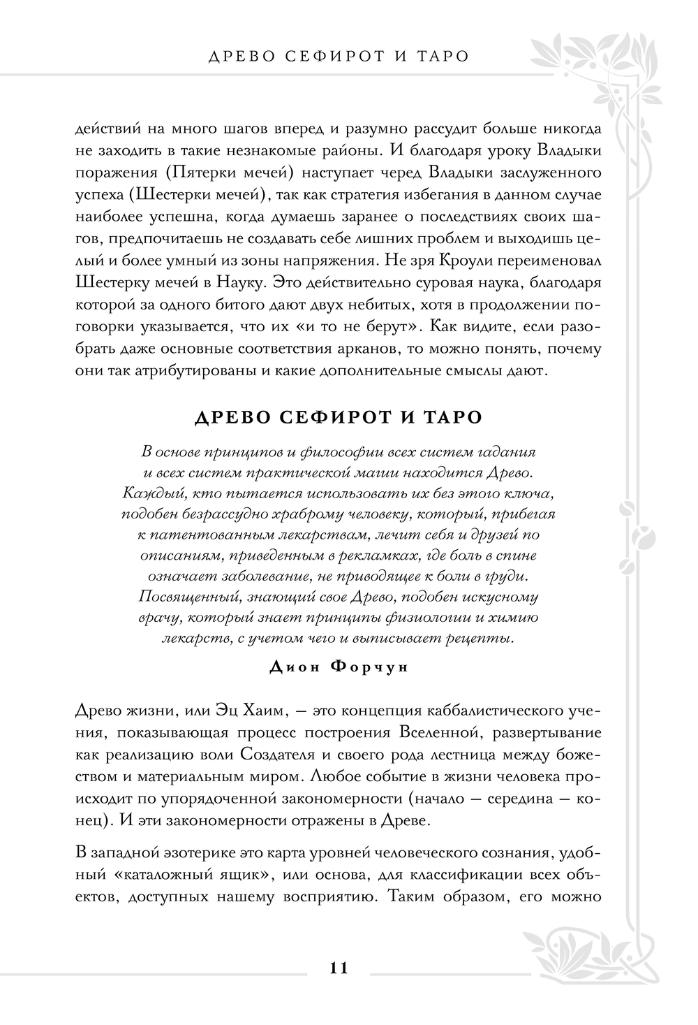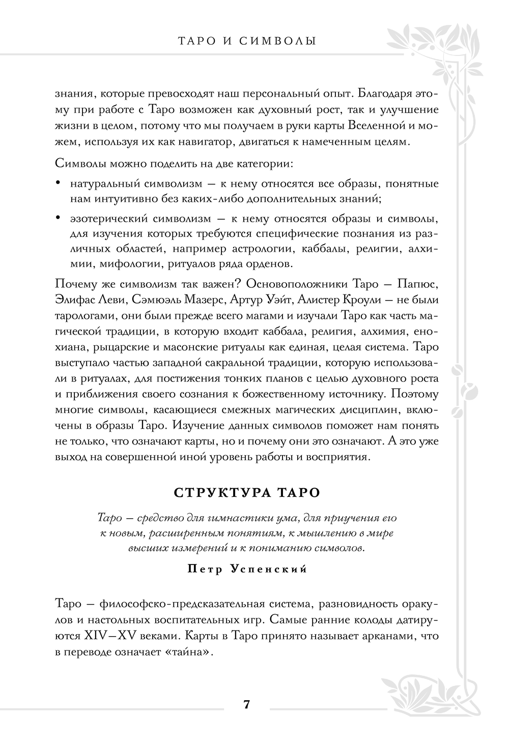 Кроме детального описания символики карт, в книге вы найдете толкование арканов в прямых и перевернутых положениях, а также приложение с цветными изображениями колоды Таро Уэйта, позволяющее подробно изучить цветовые решения и нюансы изображений.