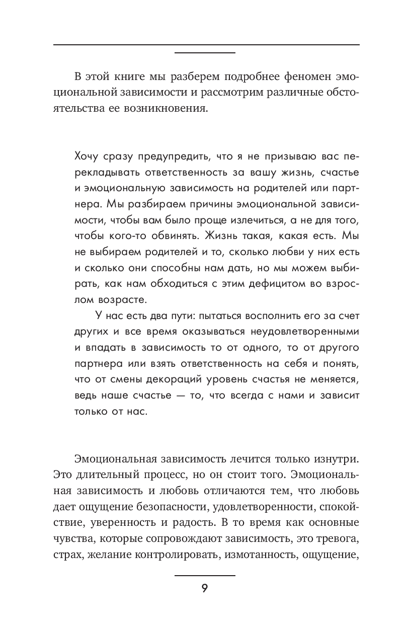 Вместе с автором вы научитесь распознавать признаки нездоровых привязанностей, понимать корни эмоциональной зависимости и ее влияние на вашу жизнь, узнаете, как освободиться от боли и сформировать здоровые границы, а также построить отношения, основанные на любви и уважении – к себе и другим.