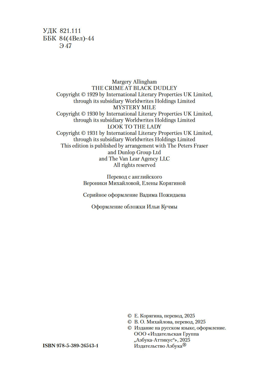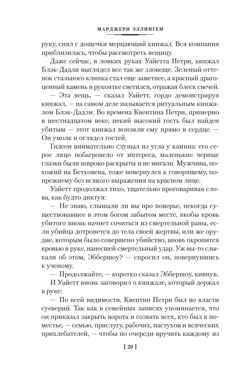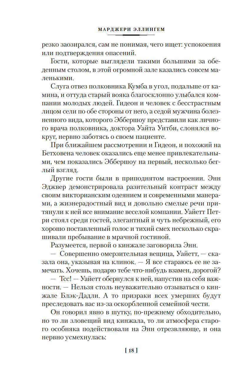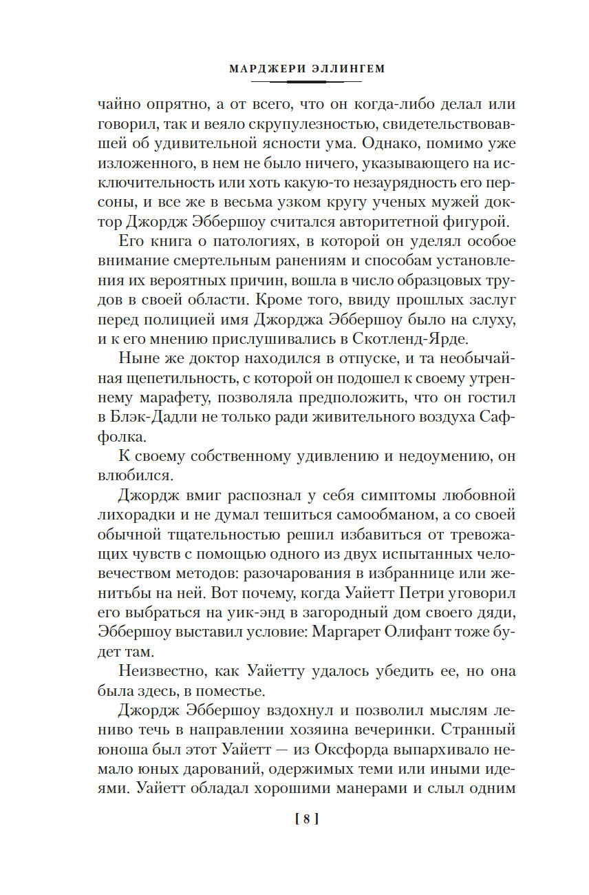 Марджери Луиза Эллингем – английская писательница, принадлежащая "золотому веку английской литературы", признанная "королева детектива" наряду с Агатой Кристи, Дороти Сэйерс и Найо Марш. Наибольшую известность приобрели книги Эллингем о сыщике-джентльмене Альберте Кэмпионе. В этот том вошли первые три романа ее главного цикла.