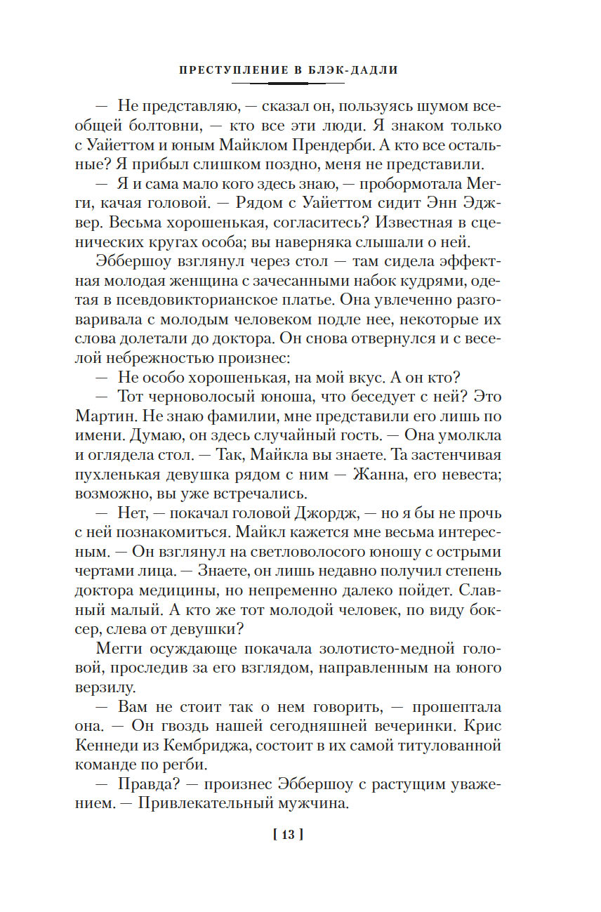 Когда Джорджа Эббершоу приглашают на уик-энд в Блэк-Дадли, он видит в этом шанс сделать предложение Мегги Олифант. Но безобидное развлечение гостей превращается в смертельную игру, и поиск преступника теперь занимает Джорджа больше, чем будущая помолвка.