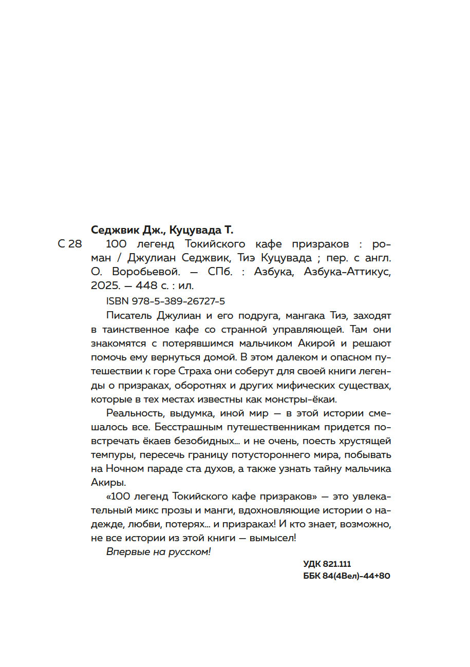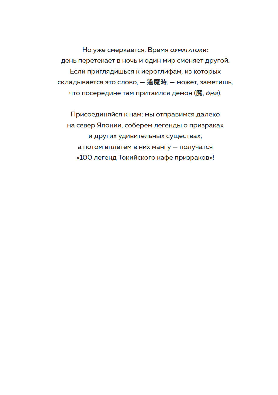 "100 легенд Токийского кафе призраков" – это увлекательный микс прозы и манги, вдохновляющие истории о надежде, любви, потерях… и призраках! И кто знает, возможно, не все истории из этой книги – вымысел!