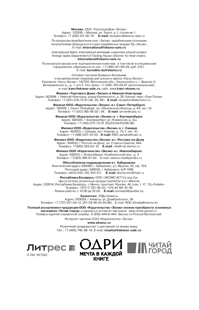 | Изготовитель | ООО «Издательство «Эксмо». РФ, г. Москва, ул. Клары Цеткин, 18, корп. 5 |