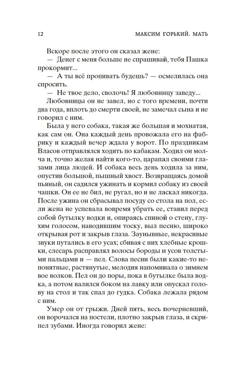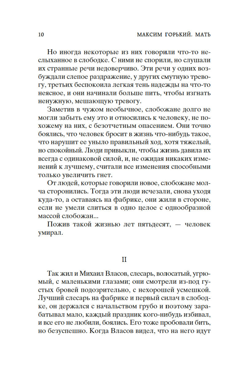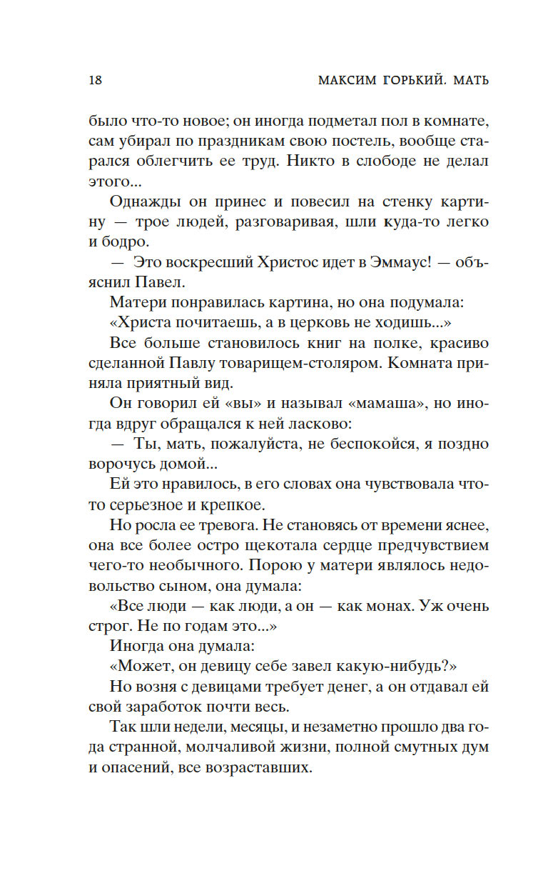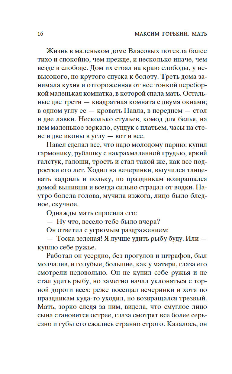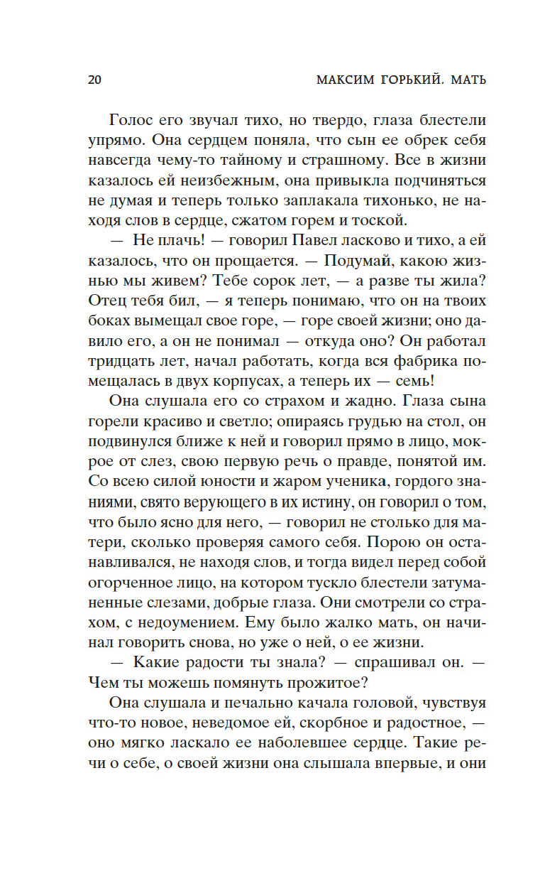 Основой романа "Мать" (1906), одного из самых известных произведений Максима Горького, послужила массовая демонстрация рабочих 1 мая 1902 года в городе Сормове. Реальные события нашли отражение в волнующем сюжете, построенном вокруг острой политической борьбы. Тайные сходки, обыски, аресты, самоотверженный героизм главного героя, революционера Павла Власова, передают сложную, полную драматизма ситуацию в канун первой русской революции. Центральный образ в романе – Пелагея Ниловна Власова, мать главного героя, один из самых ярких и трогательных персонажей русской литературы, символ безграничной любви и терпения.