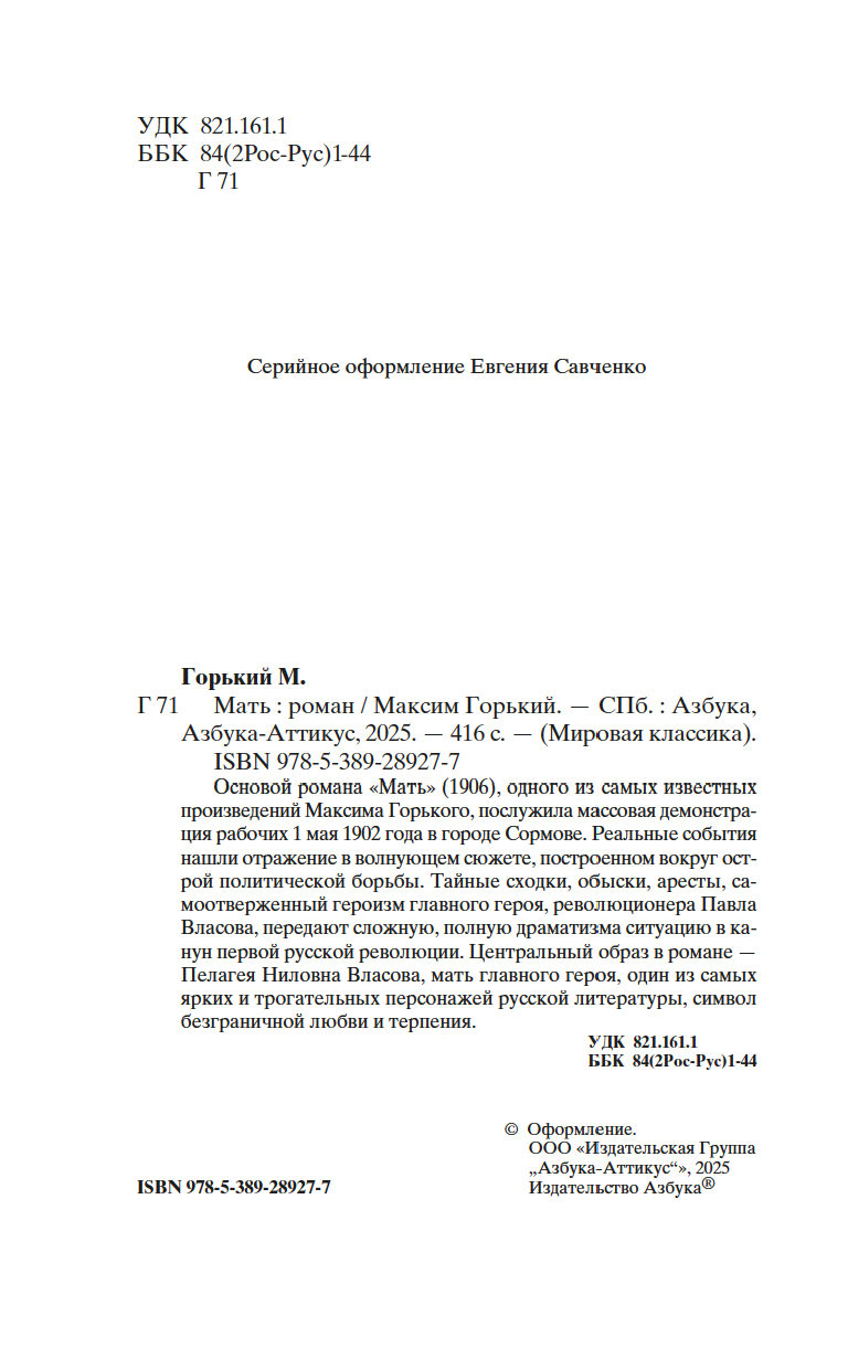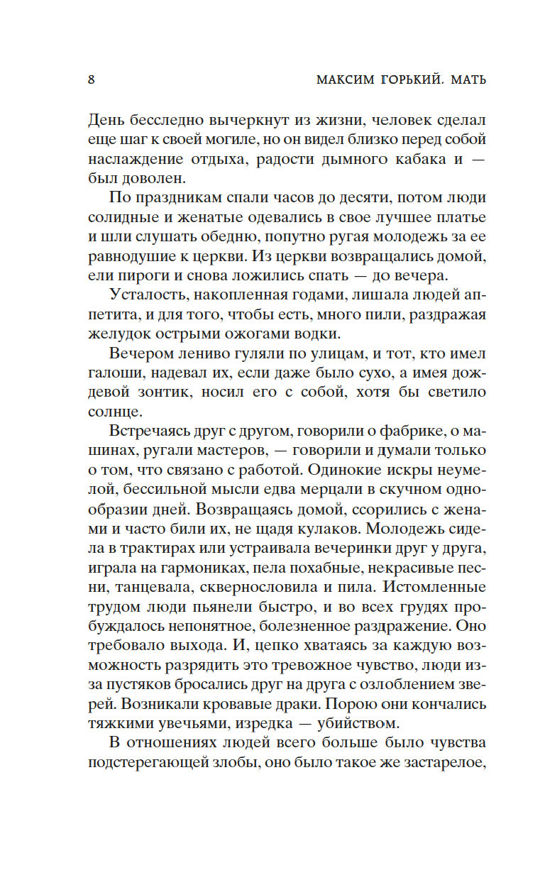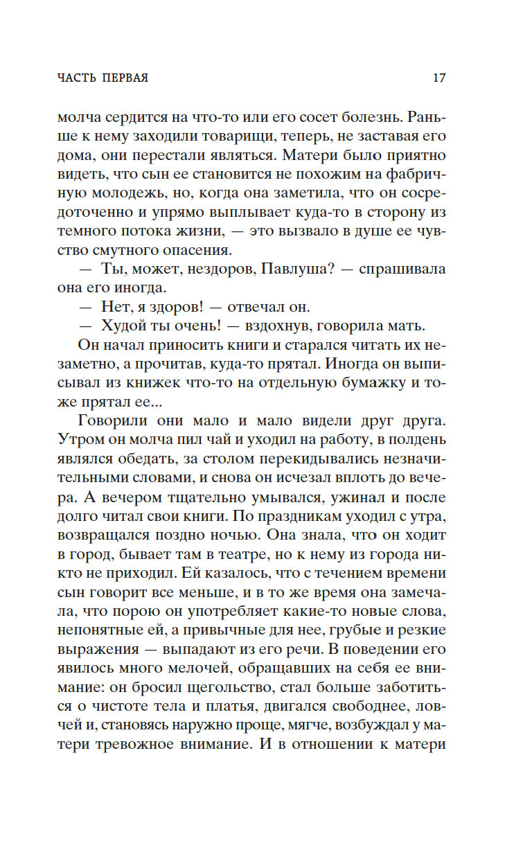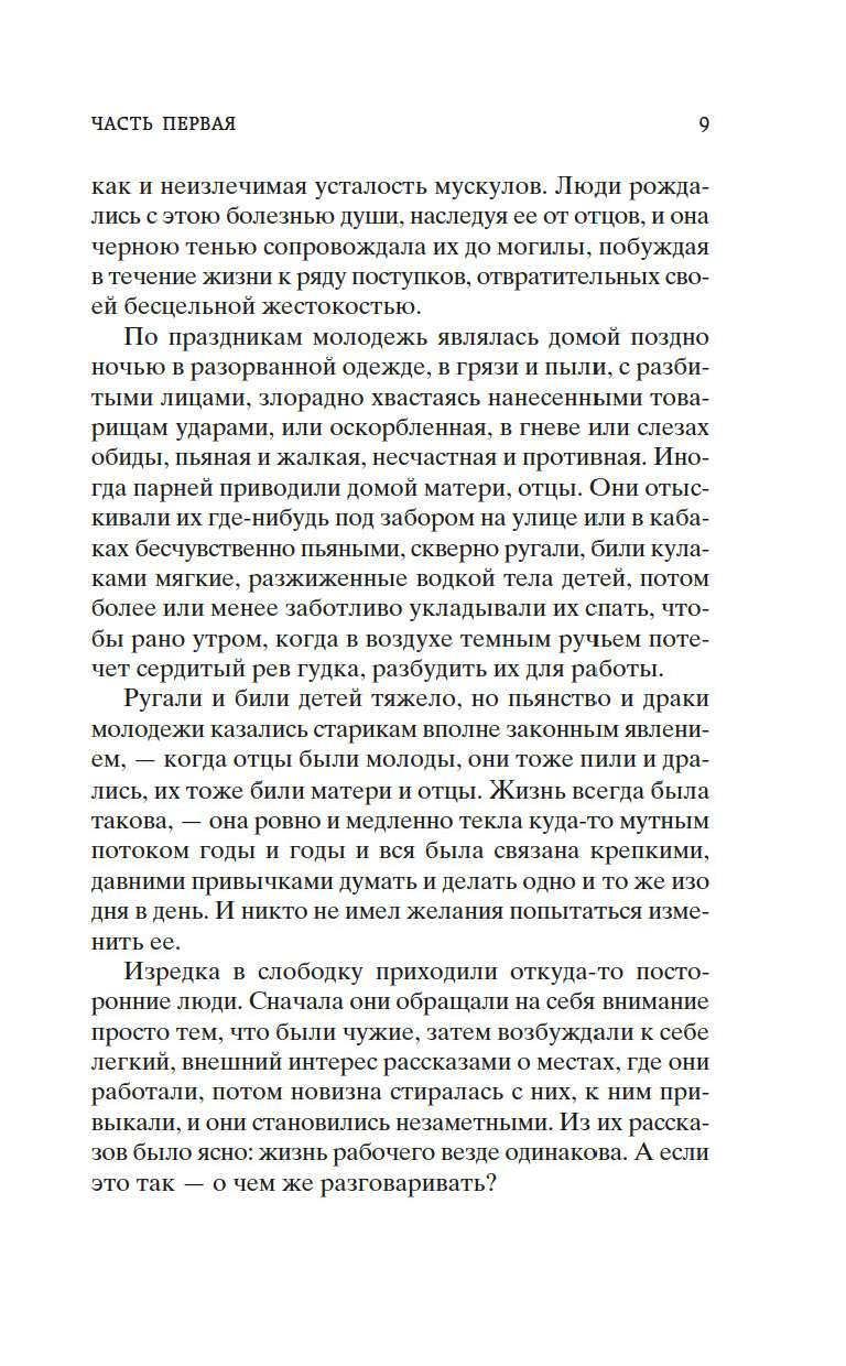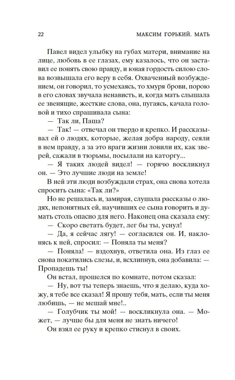 Основой романа "Мать" (1906), одного из самых известных произведений Максима Горького, послужила массовая демонстрация рабочих 1 мая 1902 года в городе Сормове. Реальные события нашли отражение в волнующем сюжете, построенном вокруг острой политической борьбы. Тайные сходки, обыски, аресты, самоотверженный героизм главного героя, революционера Павла Власова, передают сложную, полную драматизма ситуацию в канун первой русской революции. Центральный образ в романе – Пелагея Ниловна Власова, мать главного героя, один из самых ярких и трогательных персонажей русской литературы, символ безграничной любви и терпения.