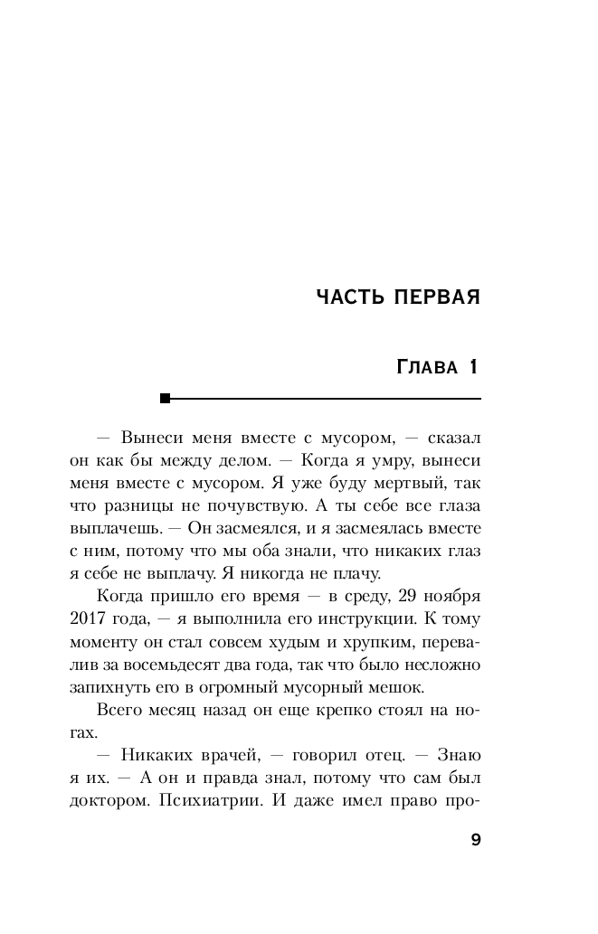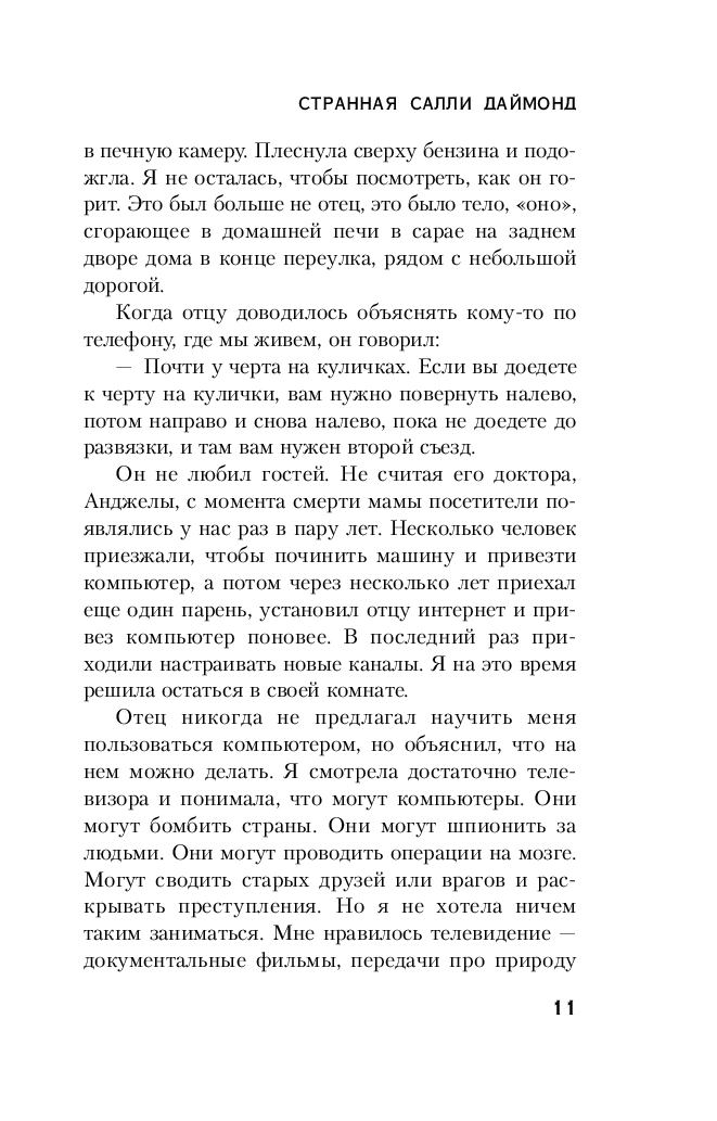 Бедная Салли Даймонд не может понять, почему то, что она сделала, кажется всем соседям и полиции таким странным. Она всего лишь выполнила просьбу своего отца – сожгла его мертвое тело в сарае вместе с мусором. Что не так? И почему полицейские недовольны тем, что потом Салли тщательно вымыла весь дом и выстирала одежду? Мама бы точно ею гордилась.