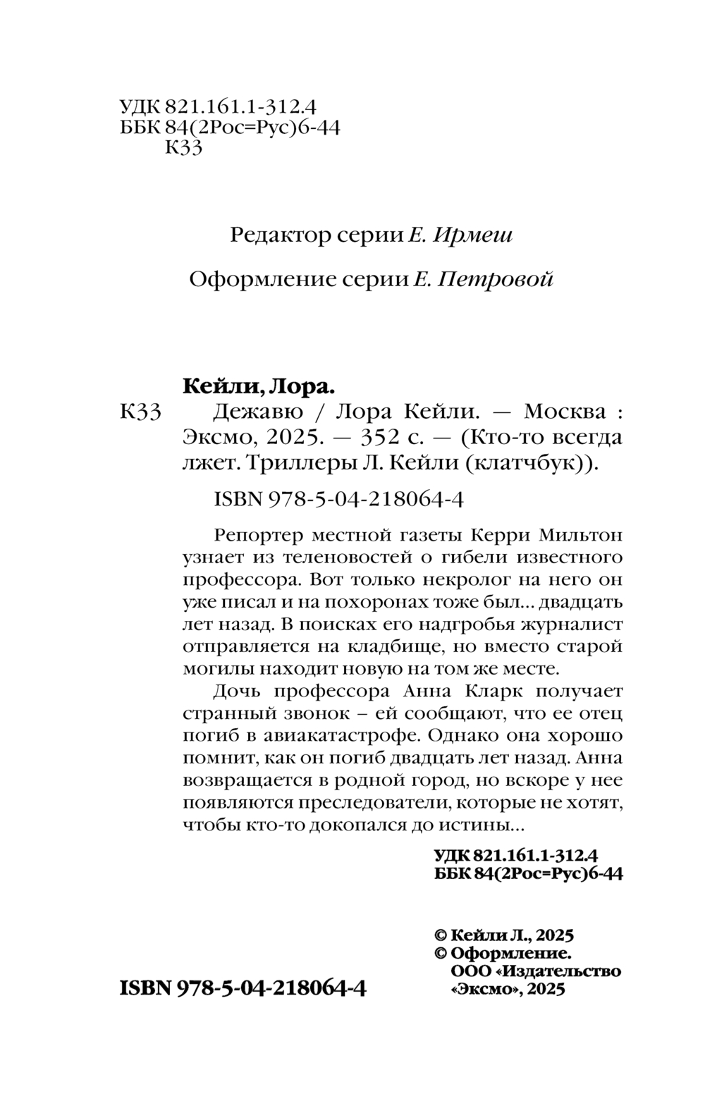 | Серия | Кто-то всегда лжёт. Триллеры Л. Кейли |