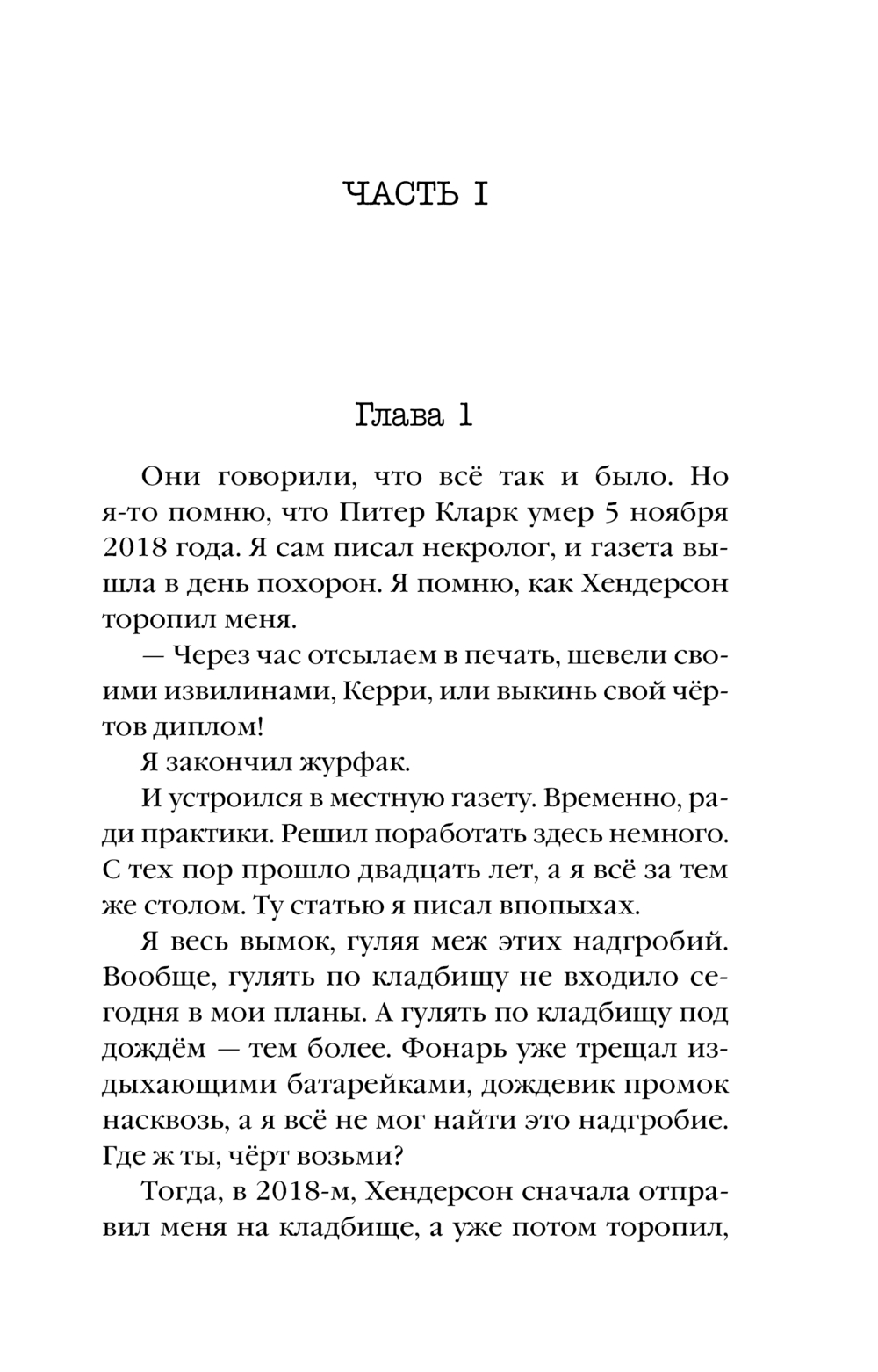Репортер местной газеты Керри Мильтон узнает из теленовостей о гибели известного профессора. Вот только некролог на него он уже писал и на похоронах тоже был... двадцать лет назад. В поисках его надгробья журналист отправляется на кладбище, но вместо старой могилы находит новую на том же месте.