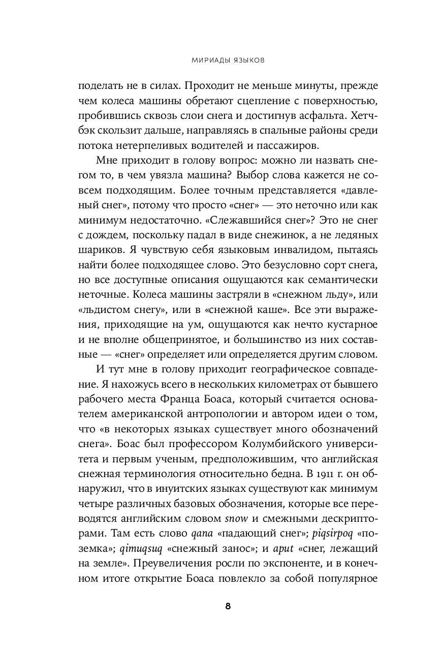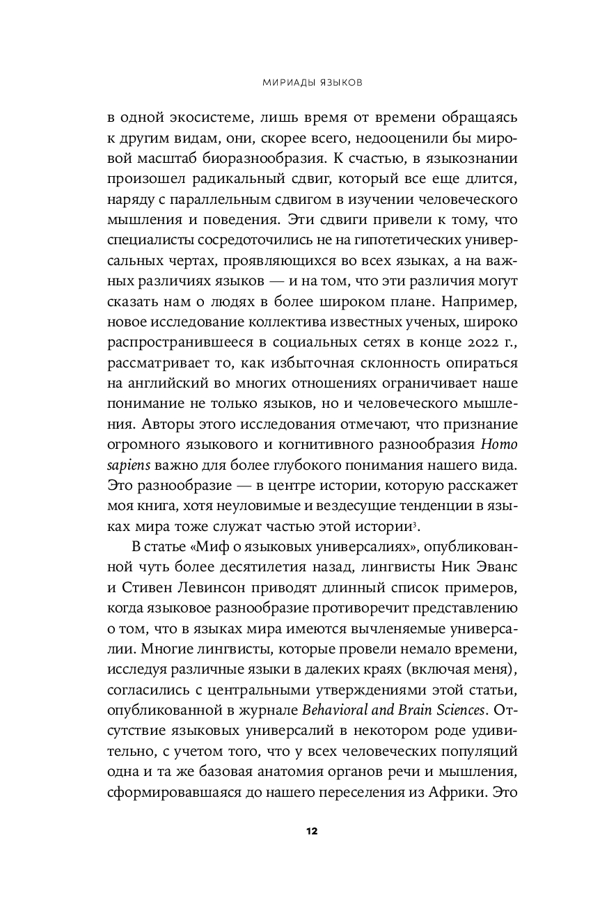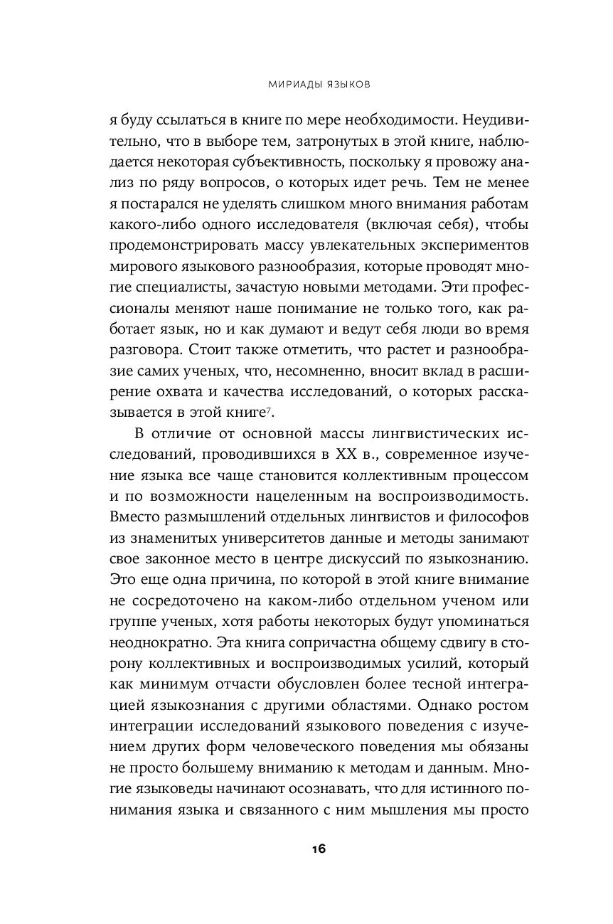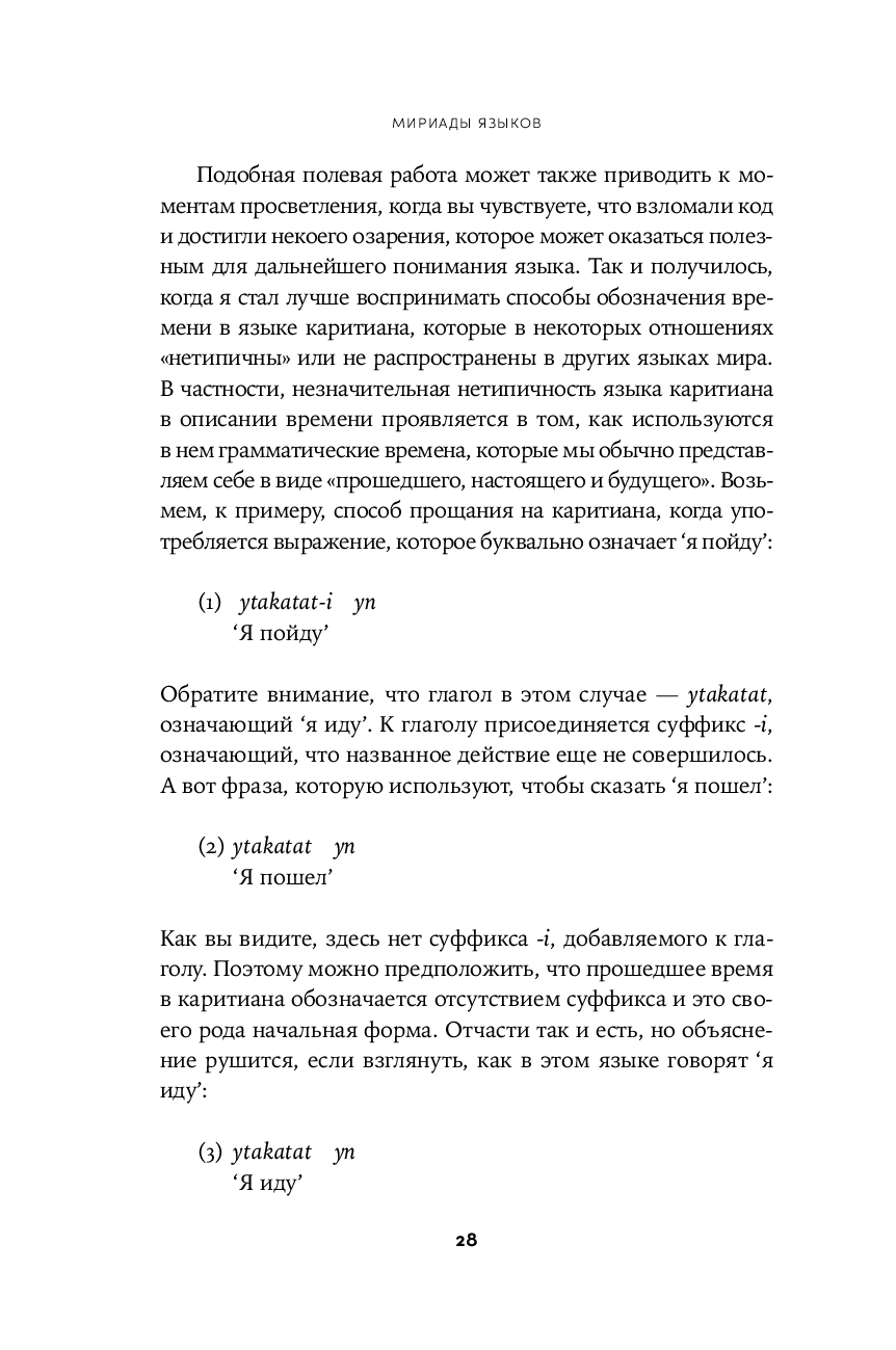 Эверетт сочетает научную точность и доступность изложения: сложные концепции иллюстрируются яркими примерами из разных языков мира. Главная ценность книги в том, что она обобщает новейшие открытия в лингвистике, многие из которых были сделаны при изучении редких языков малых народов. Здесь представлен свежий взгляд на фундаментальные вопросы о природе языка и человеческого познания.