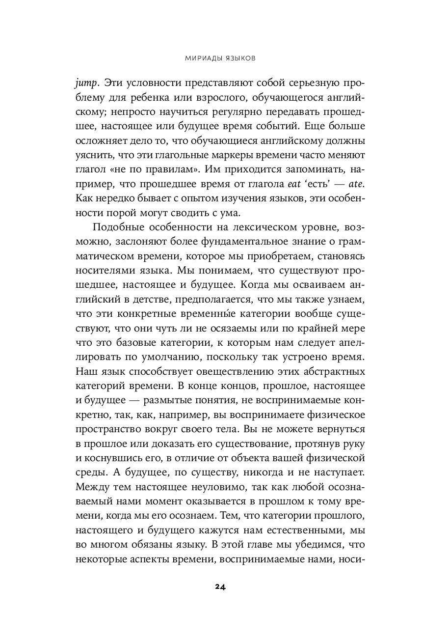 Книга представляет собой увлекательное путешествие по языковому разнообразию мира, из которого можно узнать, как именно язык отражает и формирует человеческое мышление. Опираясь на новейшие лингвистические исследования, автор показывает различия, с которыми языки кодируют базовые понятия, такие как время, пространство, цвет, запах.