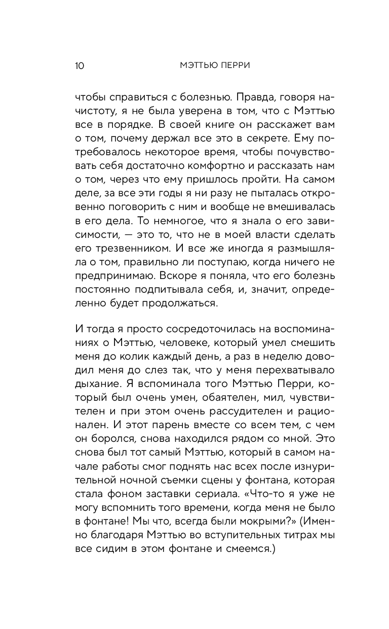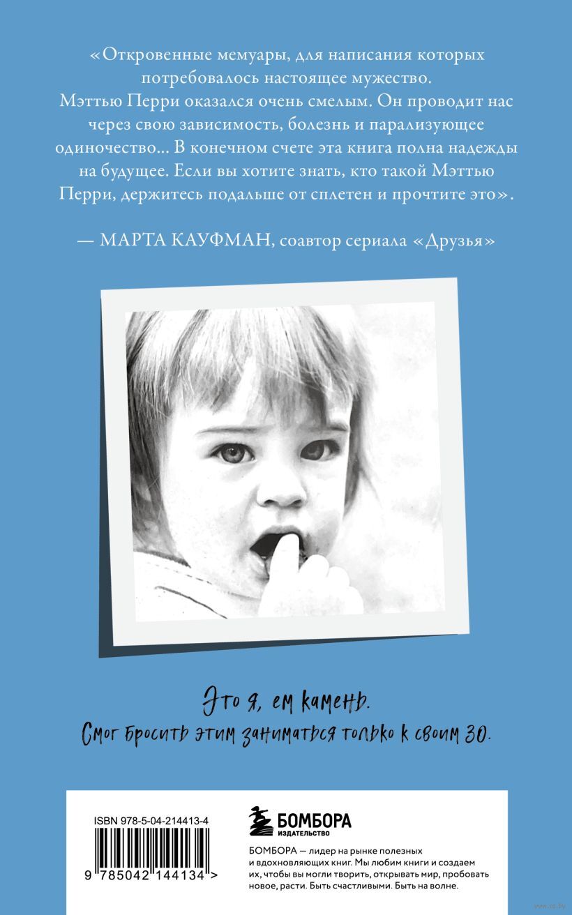 Эта книга – подлинная и откровенная история настоящего Мэттью Перри. Пронзительная исповедь и признание во всех грехах. Да, он совершал ошибки в жизни. Но единственное, что он делал в своей жизни правильно – никогда не сдавался и не опускал руки. Он расскажет обо всем: о съемках "Друзей", романе с Джулией Робертс, о своей болезни, о годах забвения и надежде на будущее.