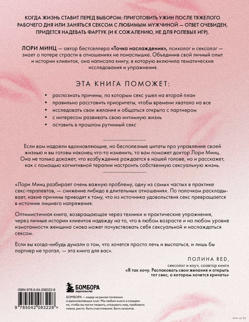 Если вам надоели вдохновляющие, но бесполезные цитаты про управление своей жизнью, и вы готовы наконец что-то изменить, то вам поможет доктор Лори Минц. Она не только докажет, что возбуждение рождается в нашей голове, но и расскажет, как с помощью когнитивной терапии настроить собственную сексуальную жизнь.