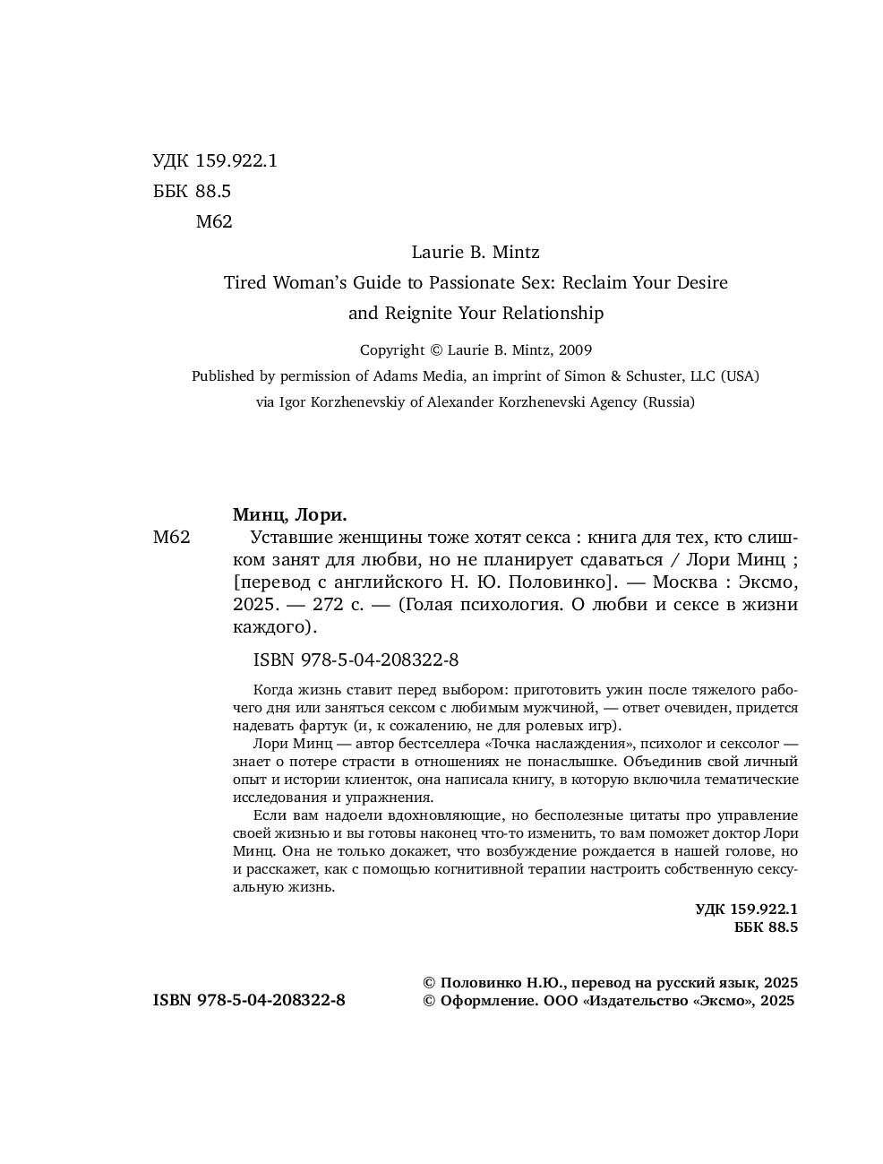 Условия бонусной программы| Название в оригинале | A Tired Woman's Guide to Passionate Sex: Reclaim Your Desire and Reignite Your Relationship |