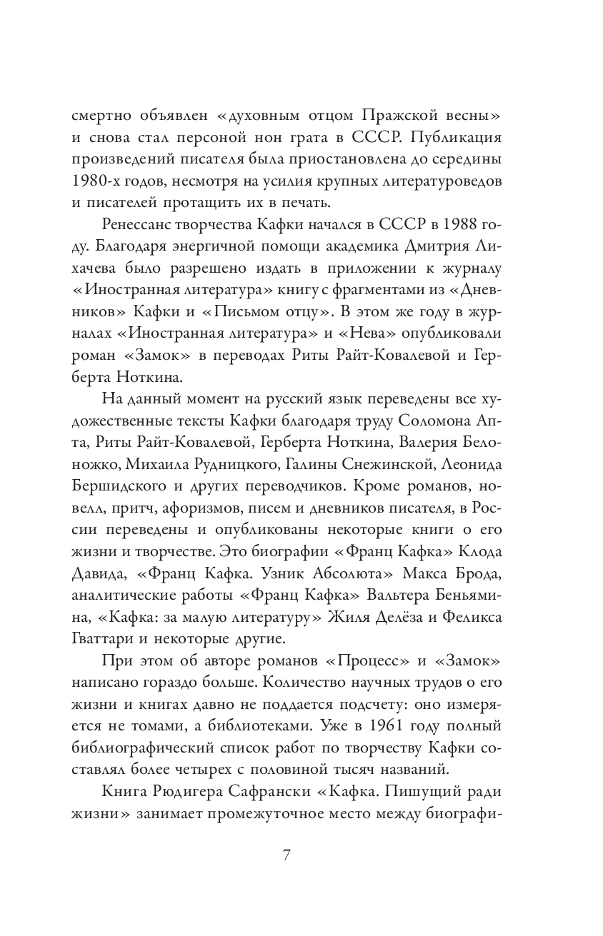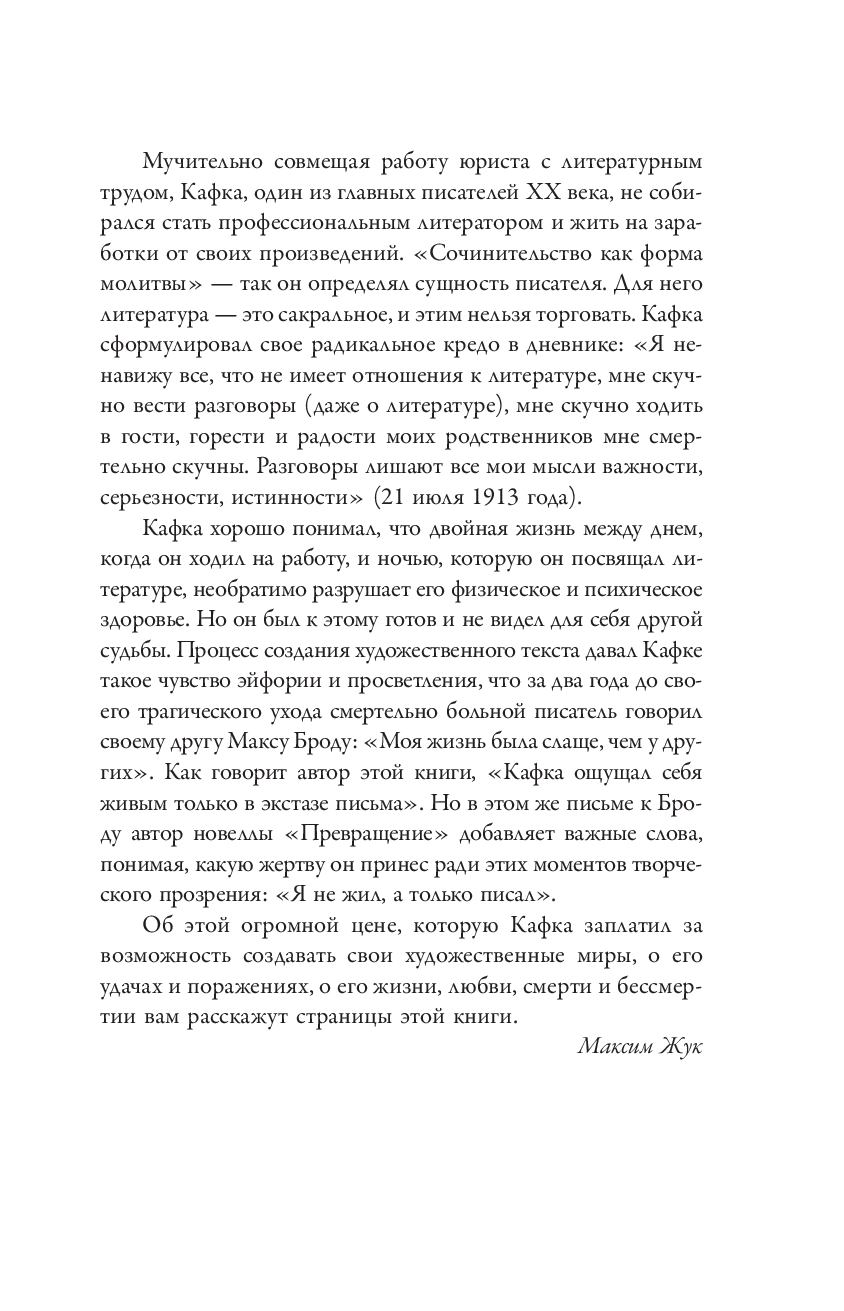 "Нет у меня наклонностей к литературе, я просто из литературы состою, я не что иное, как литература, и ничем иным быть не в состоянии", – писал Франц Кафка своей невесте Фелиции Бауэр. Писательство было его существованием, которое значило для него больше, чем законченное произведение.