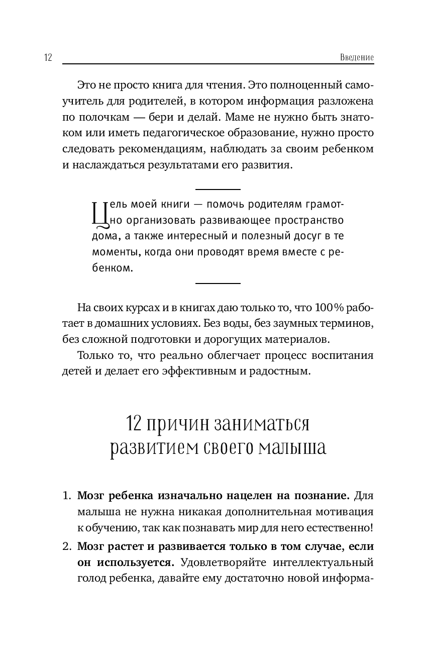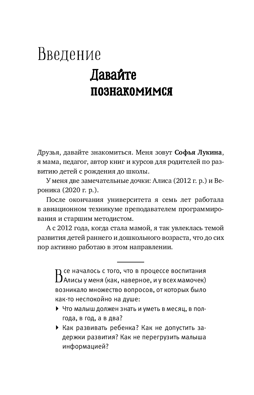 Если вас тоже интересуют подобные вопросы, то эта книга для вас! Педагог и многодетная мама Софья Лукина четко и по полочкам раскладывает всю необходимую информацию о самом важном периоде развития малыша – от года до трех лет! Вы получите пошаговый алгоритм действий для организации эффективной программы развивающих занятий: варианты упражнений, домашние задания к урокам и интересные комментарии по каждой теме. Вы узнаете, как следует развивать навыки и таланты ребенка и как это можно сделать в игровой форме. Пошаговая программа развития малыша поможет вам раскрыть способности ребенка и сделать его более любознательным. Вы заметно сблизитесь с ребенком в процессе совместной деятельности, начнете лучше понимать и чувствовать друг друга.