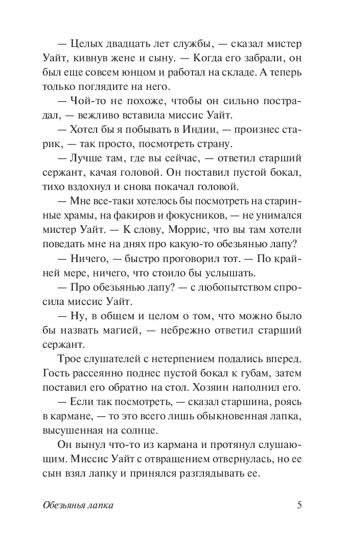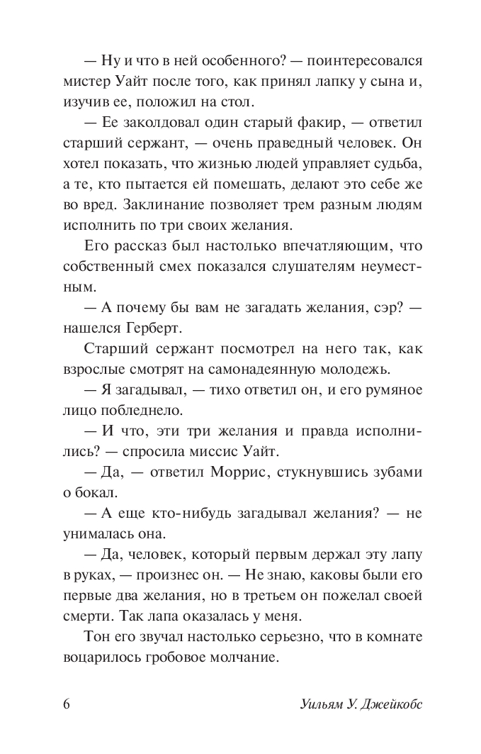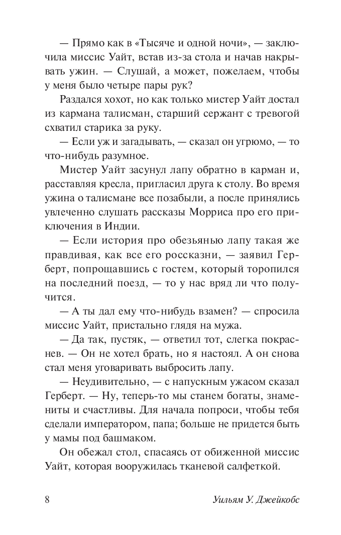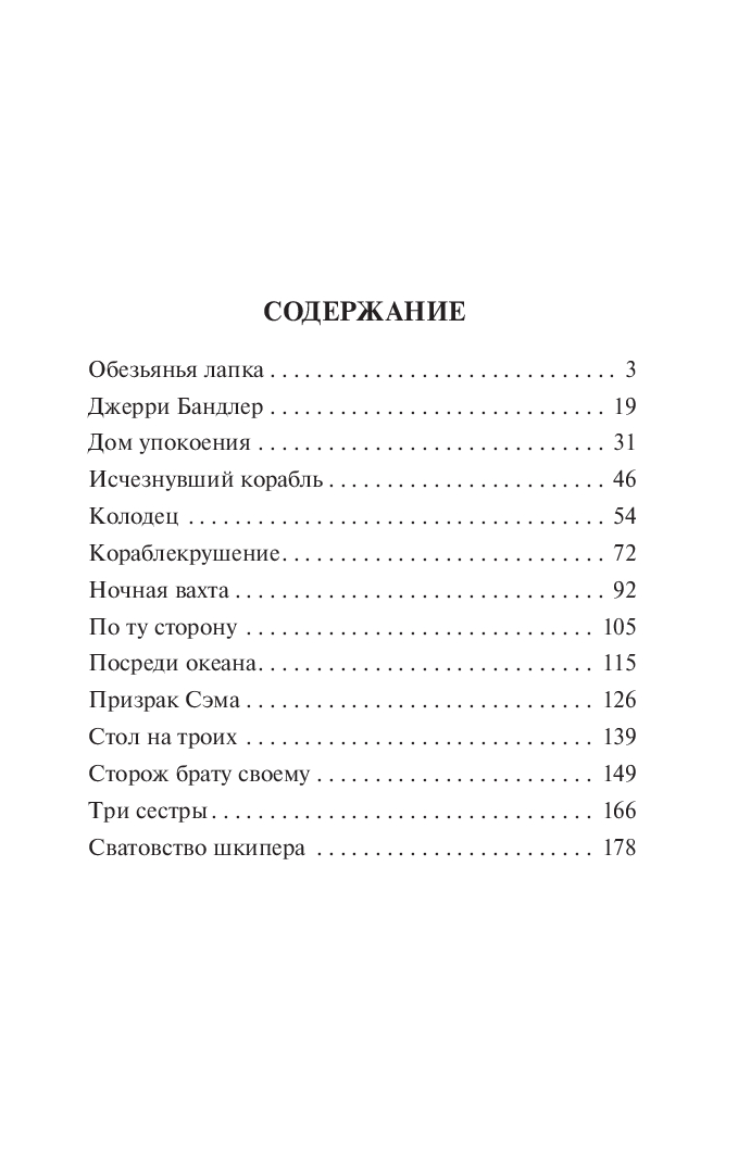 В сборник вошли и другие произведения Джейкобса, объединенные мистической темой, как серьезные и по-настоящему пугающие, так и ироничные, дразнящие читателя намеками на сверхъестественное, в итоге получающее неожиданное, но вполне реалистичное объяснение; а также озорные, принадлежащие к любимому автором жанру "моряцких баек о чудесах океанских глубин".