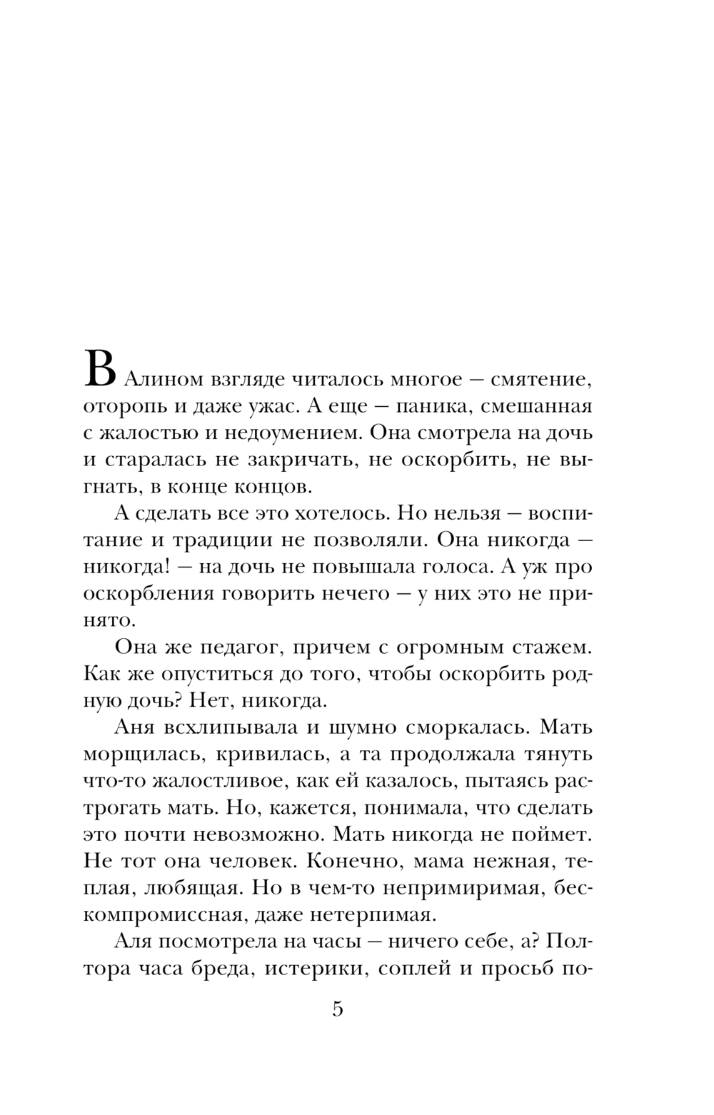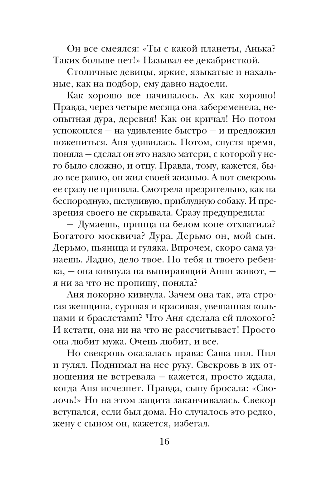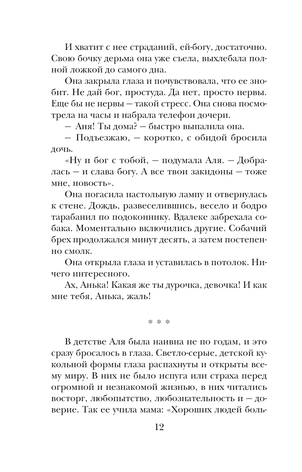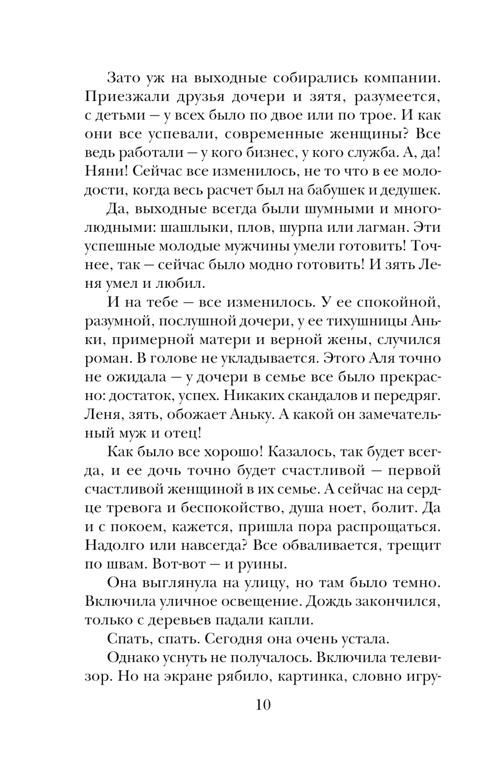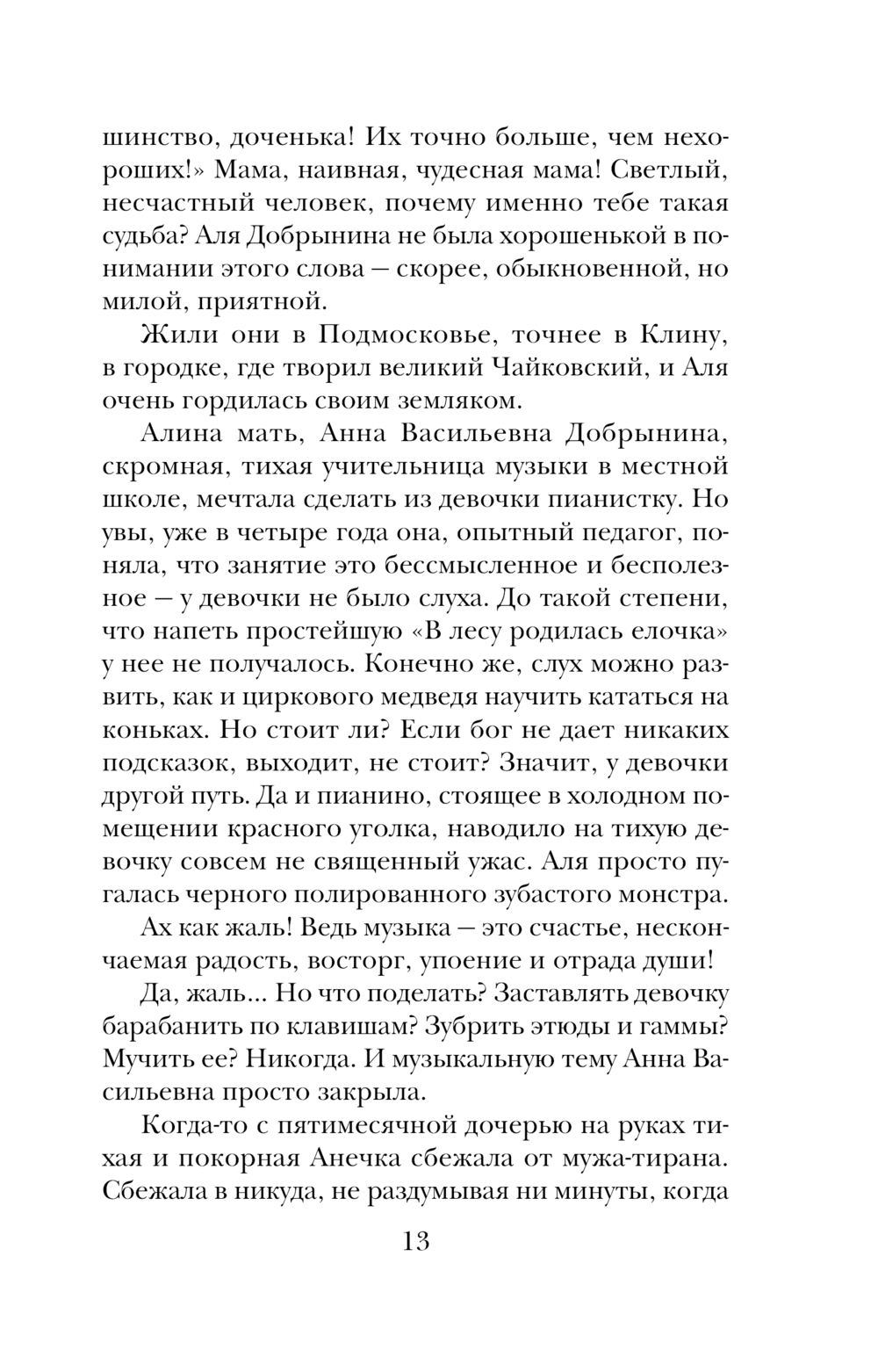 Но жизни без ошибок не бывает. И Аля, став совсем взрослой, понимает: главное – в ее жизни была любовь, настоящая, всепоглощающая. А значит, она почти счастливая женщина. Потому что быть совсем счастливой, наверное, невозможно.
