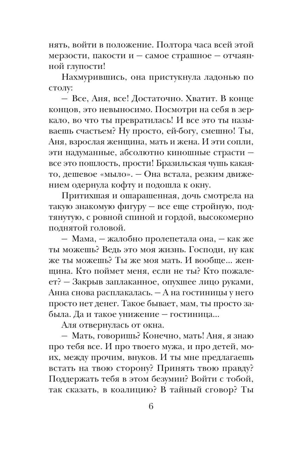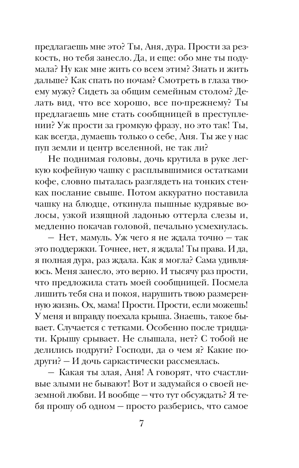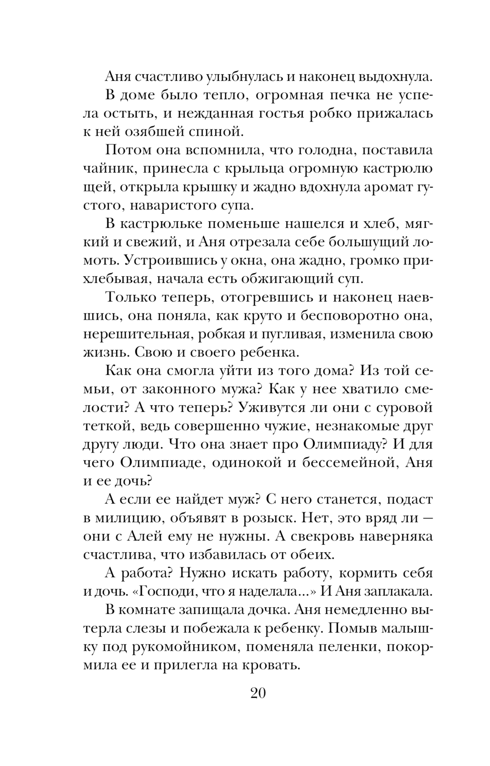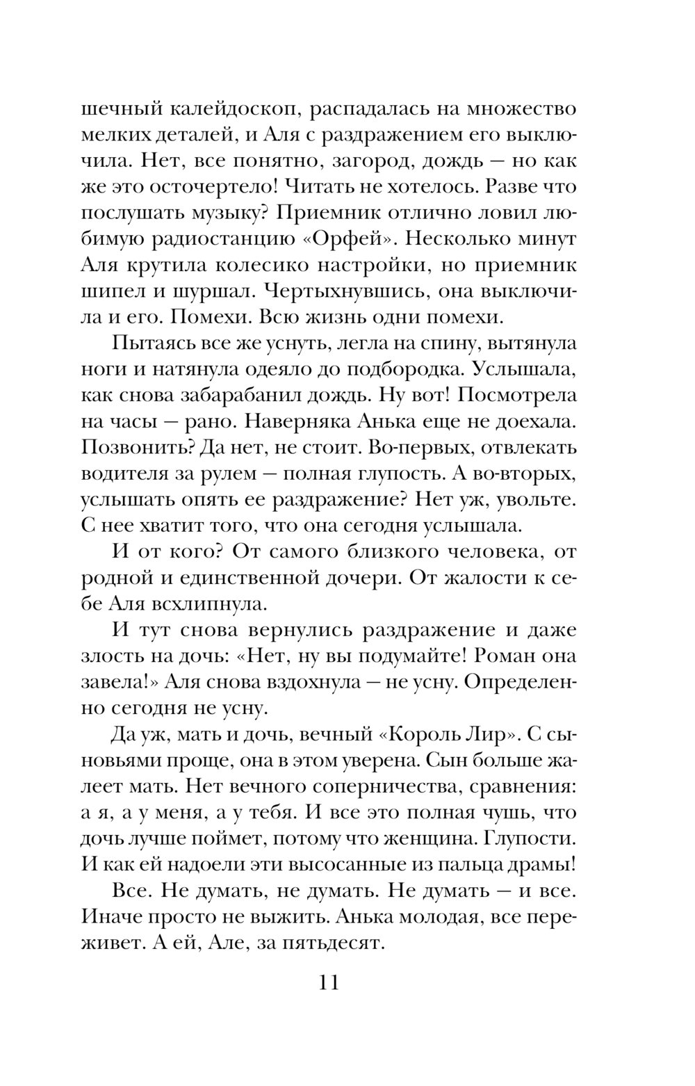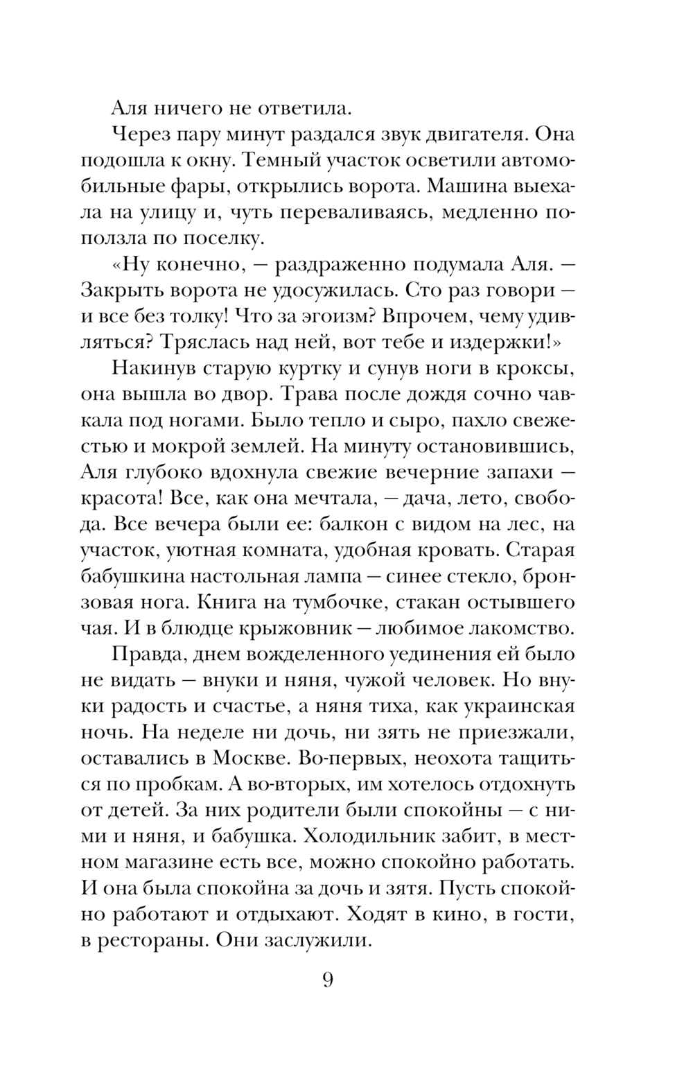 Но жизни без ошибок не бывает. И Аля, став совсем взрослой, понимает: главное – в ее жизни была любовь, настоящая, всепоглощающая. А значит, она почти счастливая женщина. Потому что быть совсем счастливой, наверное, невозможно.