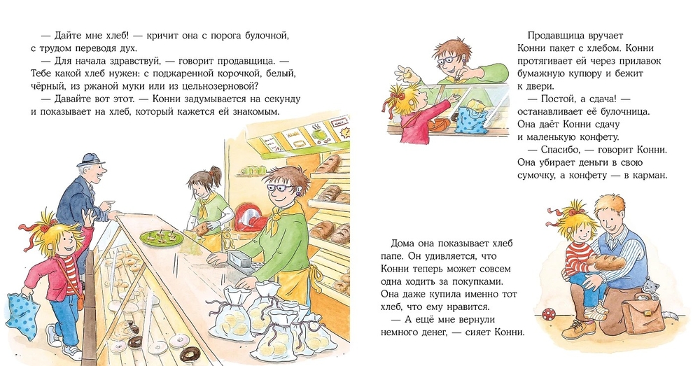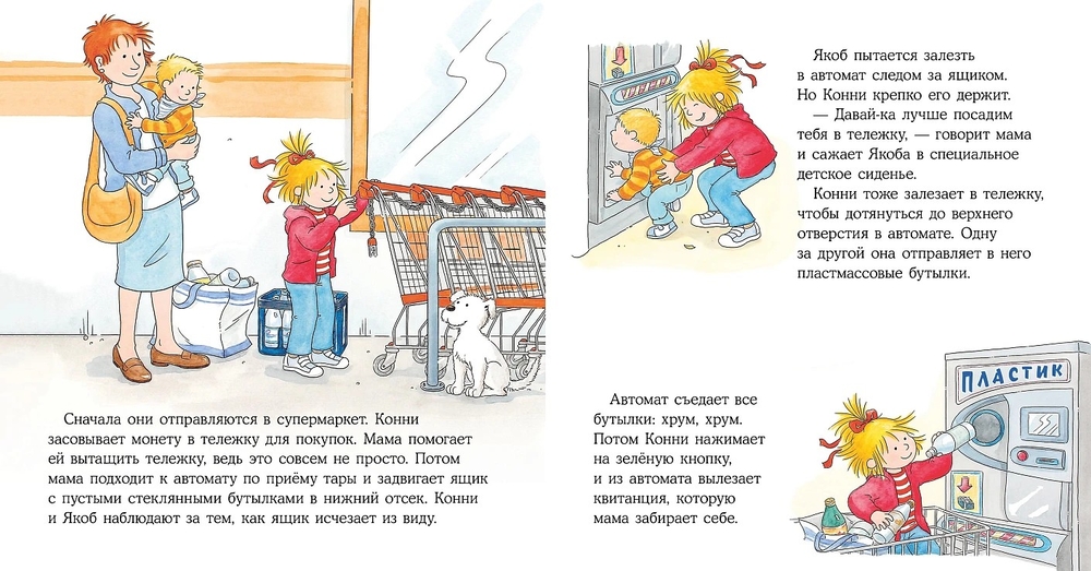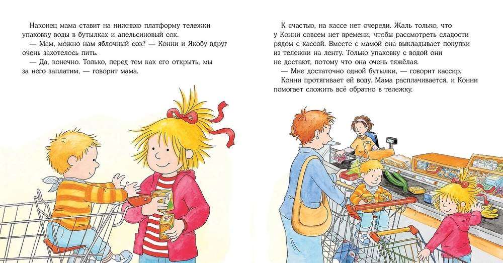 Конни вместе с мамой составляет список покупок, в супермаркете взвешивает овощи и фрукты, помогает складывать покупки на кассе и даже может добежать за хлебом в соседний магазинчик. И в итоге чувствует себя взрослой и самостоятельной – отличный результат.