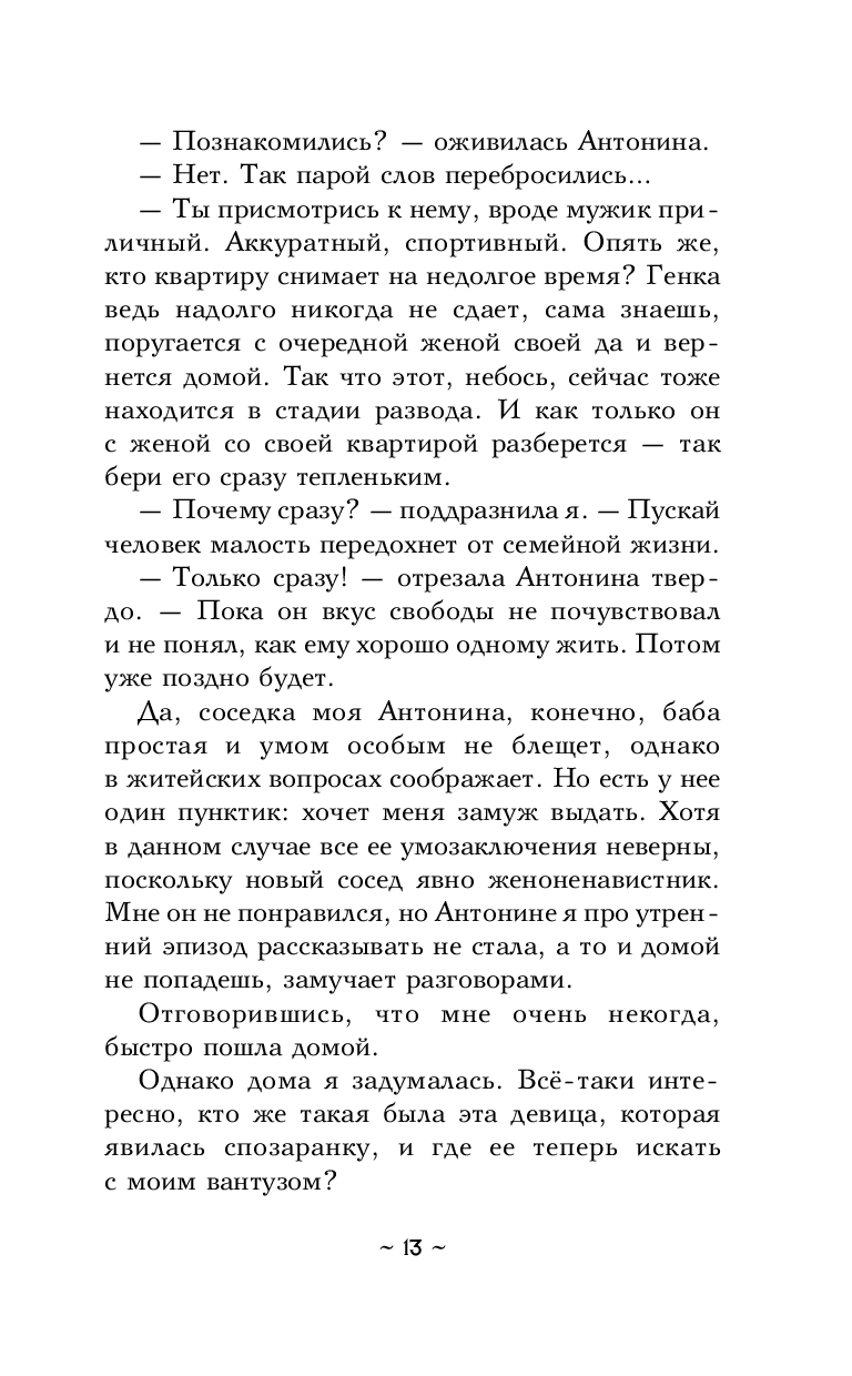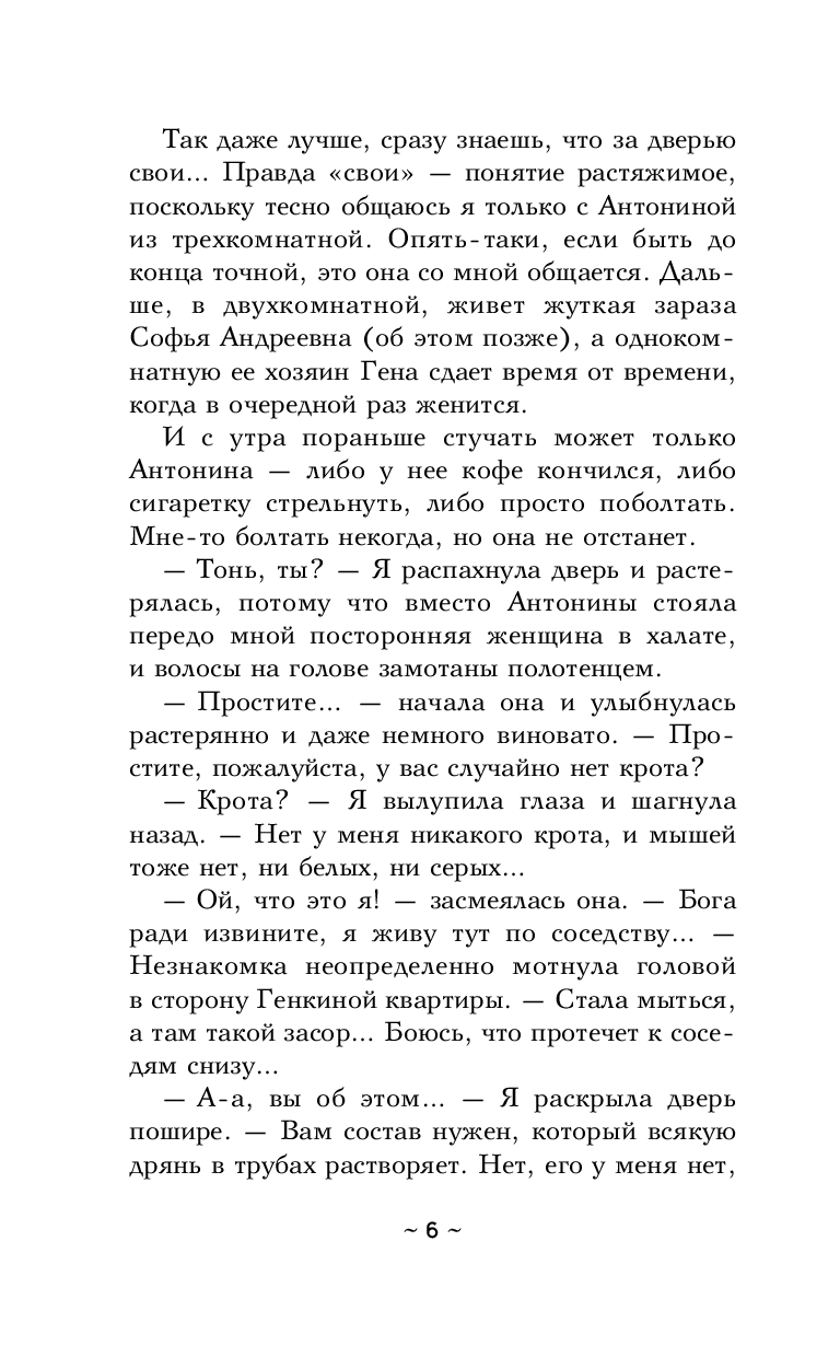 В последнее время Алина Воробьева стала замечать, что в ее жизни происходит что-то непонятное. Вещи в ее квартире оказываются не на своих местах, она почти ничего не помнит из своего детства и юности, а теперь под видом соседки в гости заявилась непонятная девица, якобы за вантузом, но ей что-то явно нужно в квартире Алины…