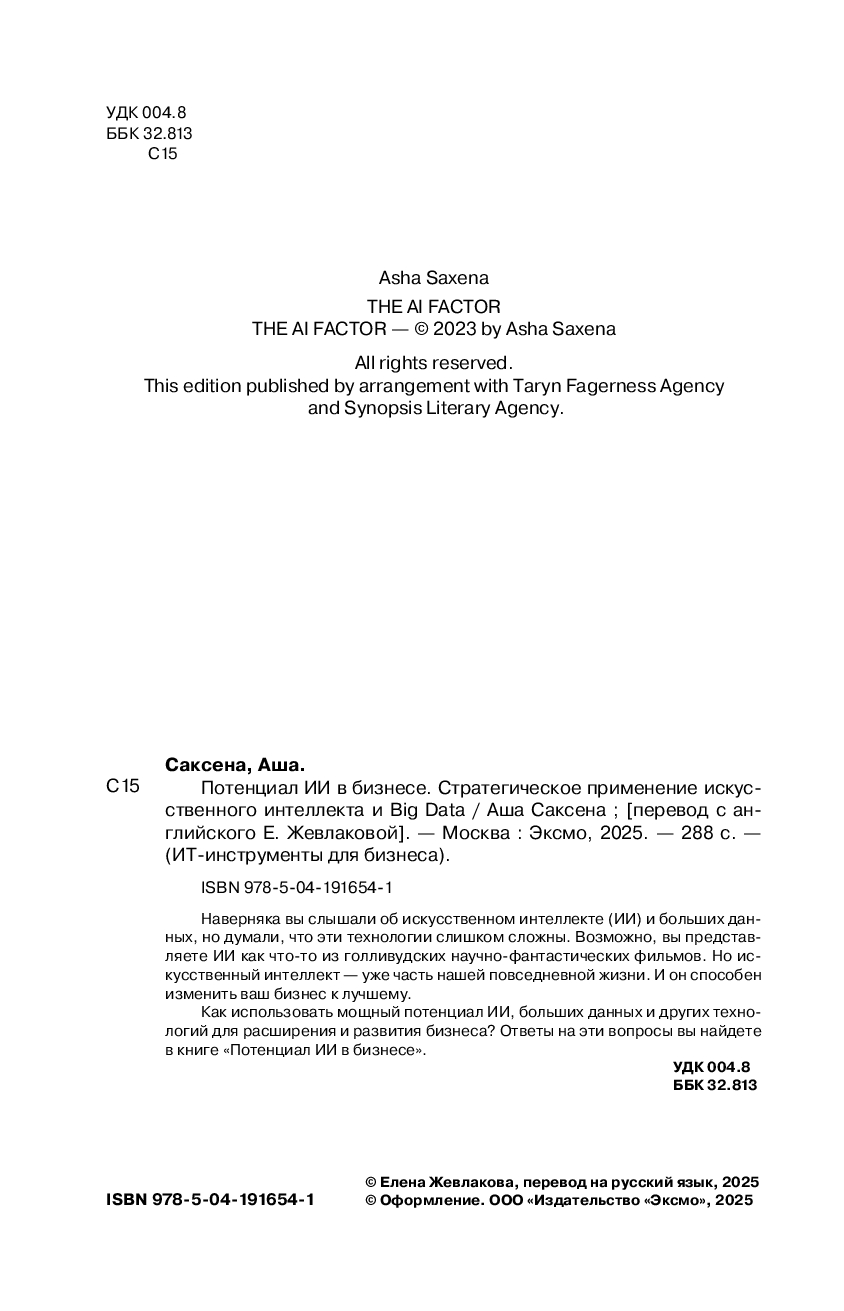 | Название в оригинале | The AI Factor: How to Apply Artificial Intelligence and Use Big Data to Grow Your Business Exponentially |