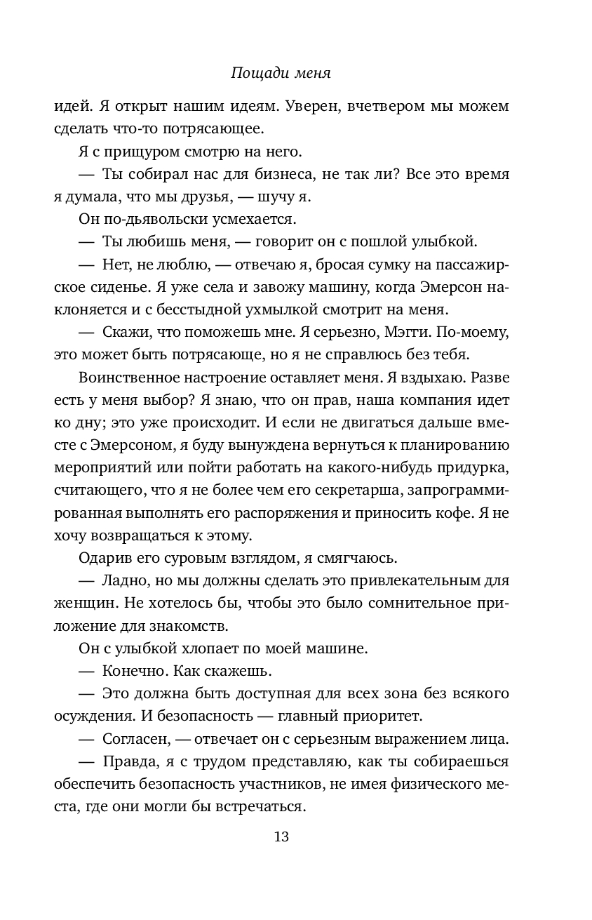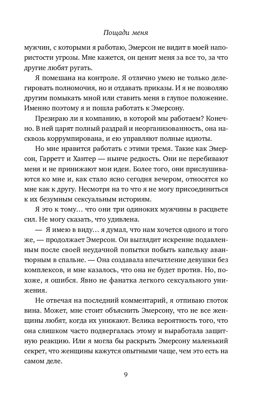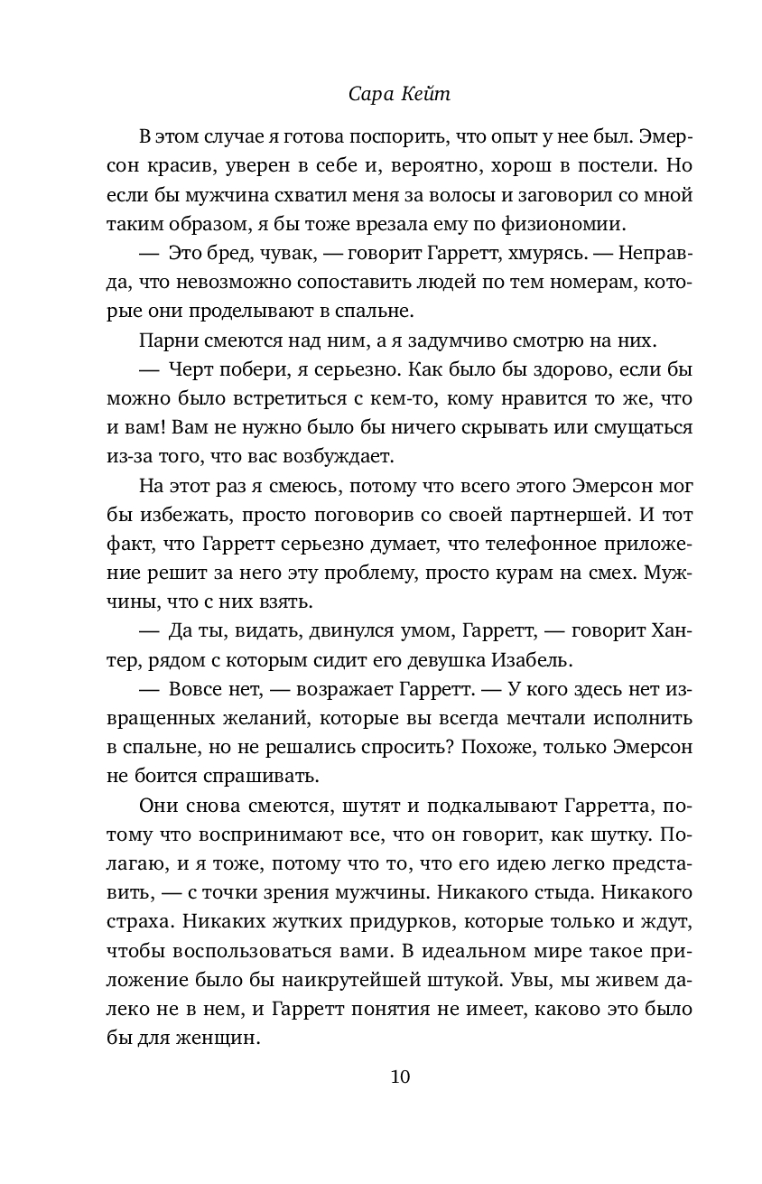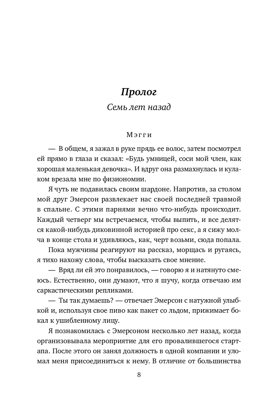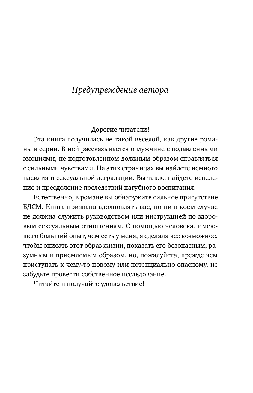 Рассказик 18+ с легкими нотками плохо проработанного сюжета. Но читается книга за 1 день как раз благодаря своей бестолковости. Ни в коем случае не хейт, я точно куплю остальные книги этого автора, чтоб расслабить мозг. Бумага, кстати, приятного желтого оттенка, благодаря чему глаза не устают вообще и можно прочитать ее реально за один присест, без отвлечений.
