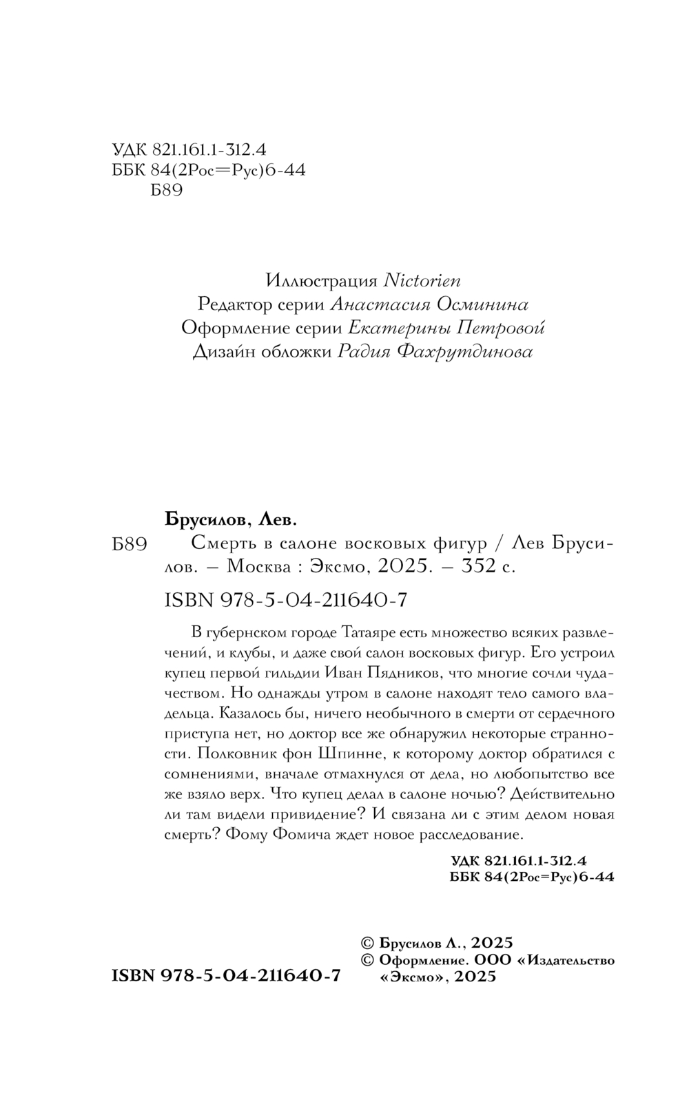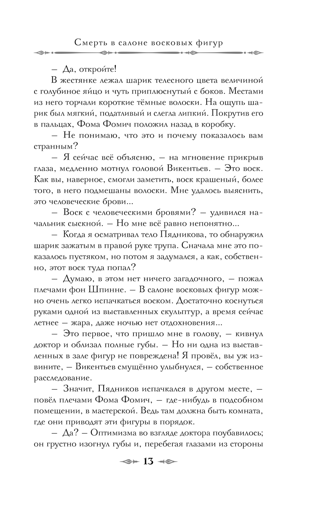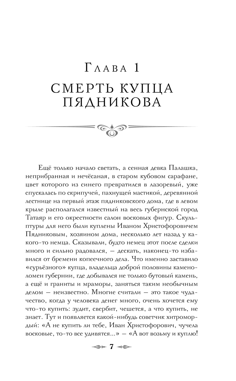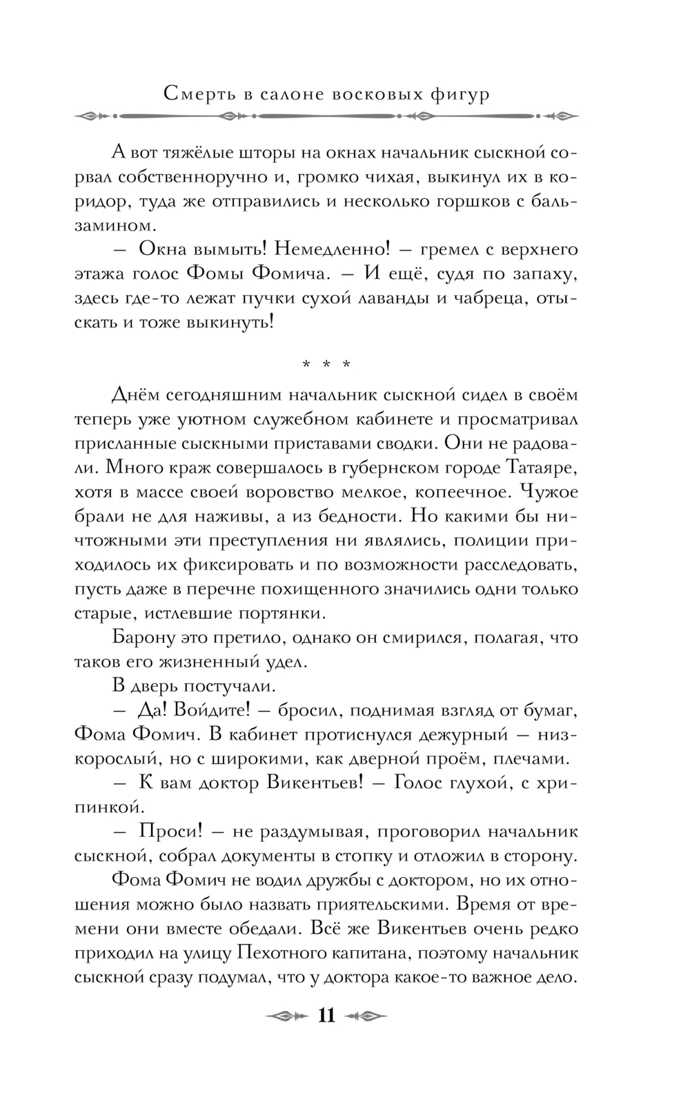 В губернском городе Татаяре есть множество всяких развлечений, клубы, идаже свой салон восковых фигур. Его открыл купец первой гильдии Иван Пядников, что многие сочли чудачеством. Однажды утром в салоне находят тело самого владельца. Казалось бы, ничего необычного в смерти от сердечного приступа нет, но доктор все же обнаружил некоторые странности. Полковник фон Шпинне, к которому доктор обратился с сомнениями, вначале отмахнулся от дела, но любопытство все же взяло верх. Что купец делал в салоне ночью? Действительно ли там видели привидение? И связана ли с этим делом новая смерть? Фому Фомича ждет новое расследование.