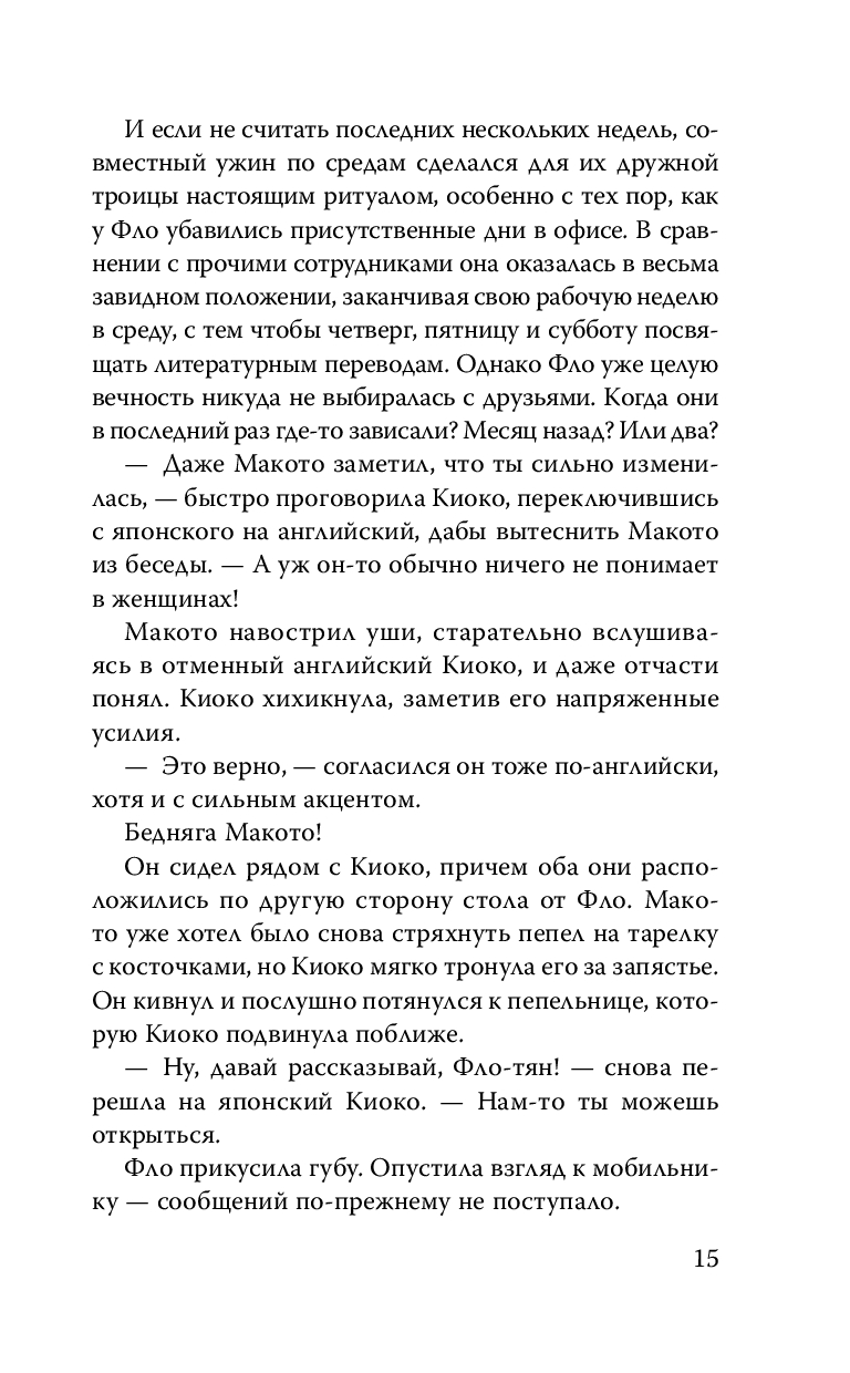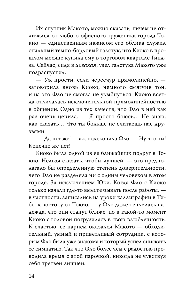 Фло до безумия устала от Токио. Здесь она пережила момент триумфа, и здесь же впала в отчаяние. Найденная в метро книга становится ее новой целью – она настолько перекликается с тем, что происходит у нее в душе, что Фло решает во что бы то ни стало отыскать автора. Даже если придется ехать в далекую провинцию на самый край острова.
