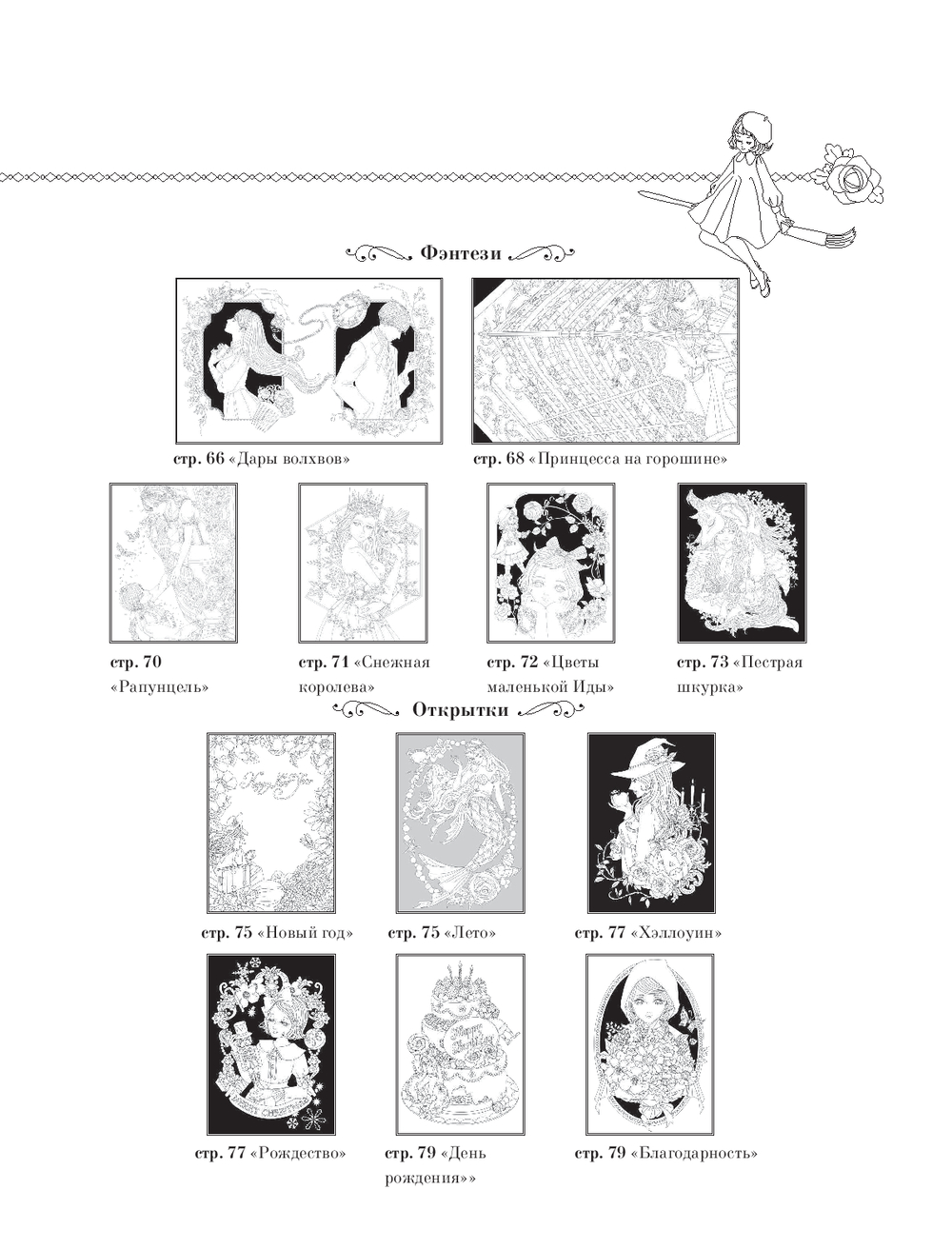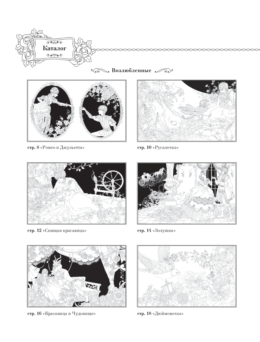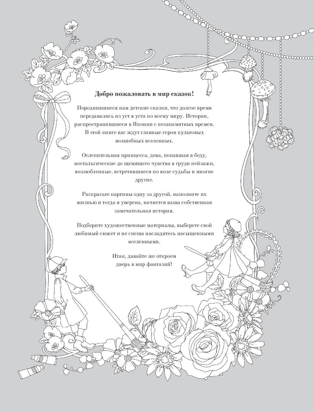Перед вами раскраска от талантливой японской художницы Мари Катоги. Внутри вас ждут очаровательные иллюстрации сказк со всего земного шара, собиравшихся столетиями одна за другой: от "Ромео и Джульетты" до "Гамельнского крысолова". Хватайте свои любимые материалы, выбирайте наиболее понравившийся сюжет и создайте свой уникальный волшебный мир!