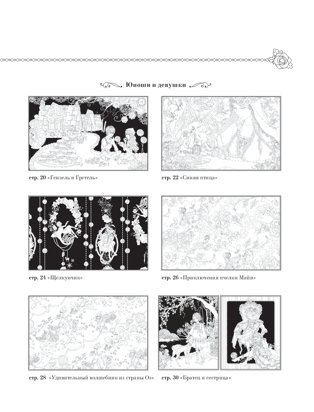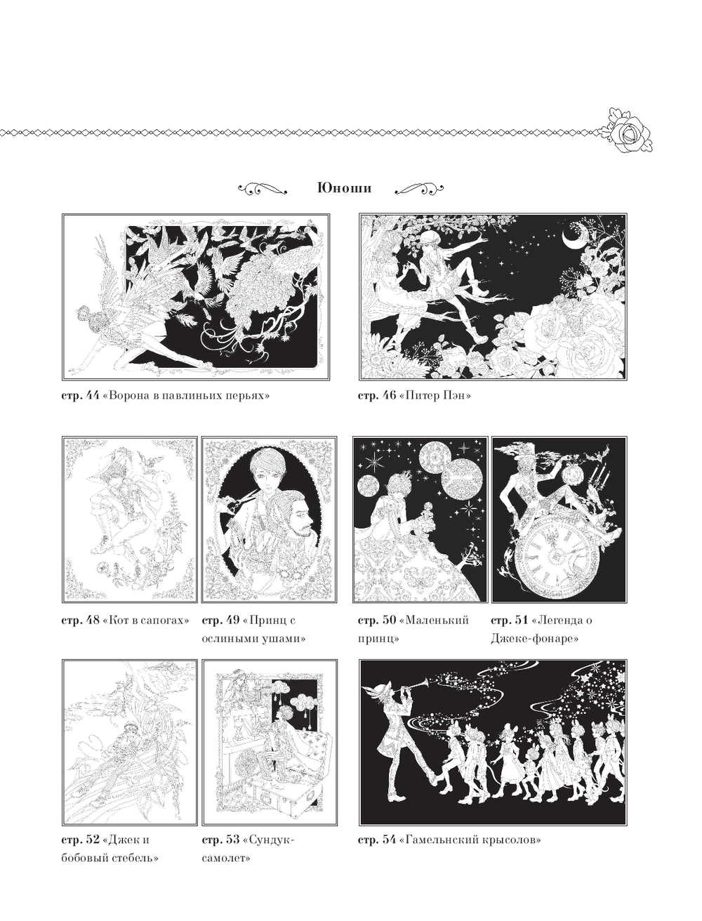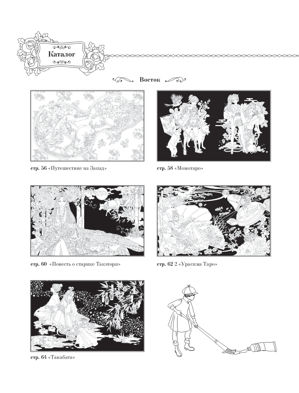 Перед вами раскраска от талантливой японской художницы Мари Катоги. Внутри вас ждут очаровательные иллюстрации сказк со всего земного шара, собиравшихся столетиями одна за другой: от "Ромео и Джульетты" до "Гамельнского крысолова". Хватайте свои любимые материалы, выбирайте наиболее понравившийся сюжет и создайте свой уникальный волшебный мир!