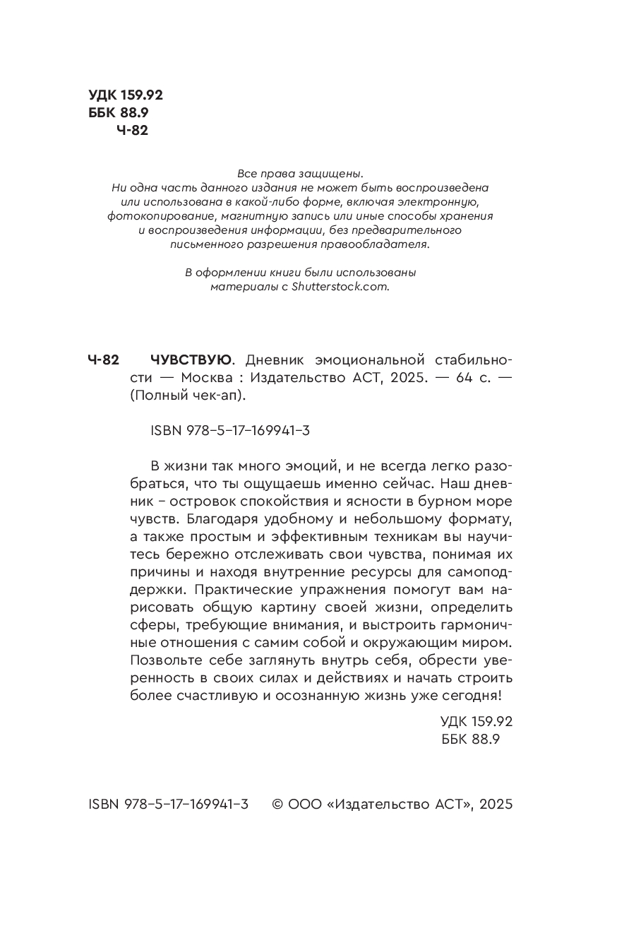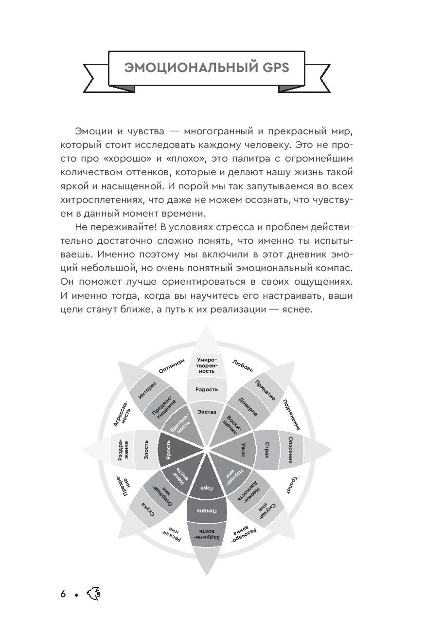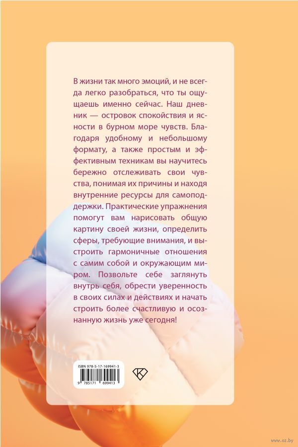 В жизни так много эмоций, и не всегда легко разобраться, что ты ощущаешь именно сейчас. Наш дневник – островок спокойствия и ясности в бурном море чувств. Благодаря удобному и небольшому формату, а также простым и эффективным техникам вы научитесь бережно отслеживать свои чувства, понимая их причины и находя внутренние ресурсы для самоподдержки. Практические упражнения помогут вам нарисовать общую картину своей жизни, определить сферы, требующие внимания, и выстроить гармоничные отношения с самим собой и окружающим миром. Позвольте себе заглянуть внутрь себя, обрести уверенность в своих силах и действиях и начать строить более счастливую и осознанную жизнь уже сегодня!