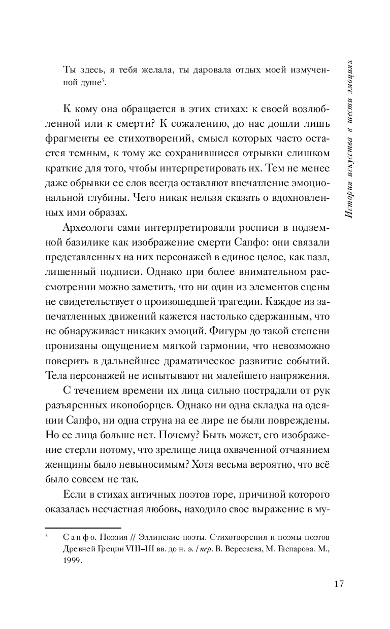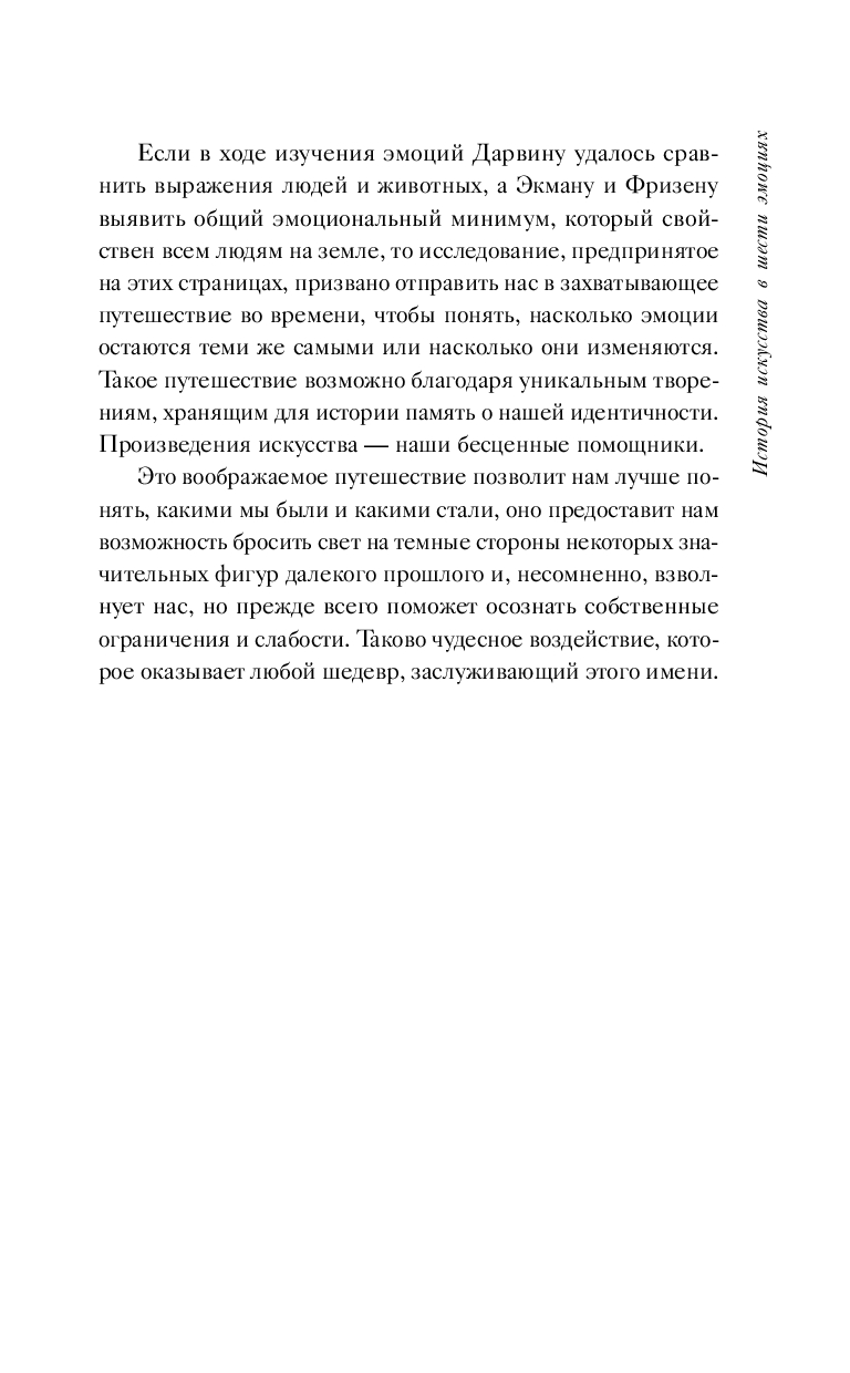 Историю искусства можно рассказывать по-разному, но эта книга выбирает самый необычный способ. От осколков Древней Греции до шедевров Возрождения, от изобретений барокко до провокаций двадцатого века – искусство опиралось на эмоции, создавая символы и персонажей, чтобы их выразить. Историк искусства Константино Д'Орацио приглашает читателей совершить путешествие во времени, от античности до наших дней, чтобы узнать, как художники изображали эмоции, которые таятся в самых невыразимых и захватывающих снах человека: желание, безумие, веселье, страдание, изумление и сомнение.