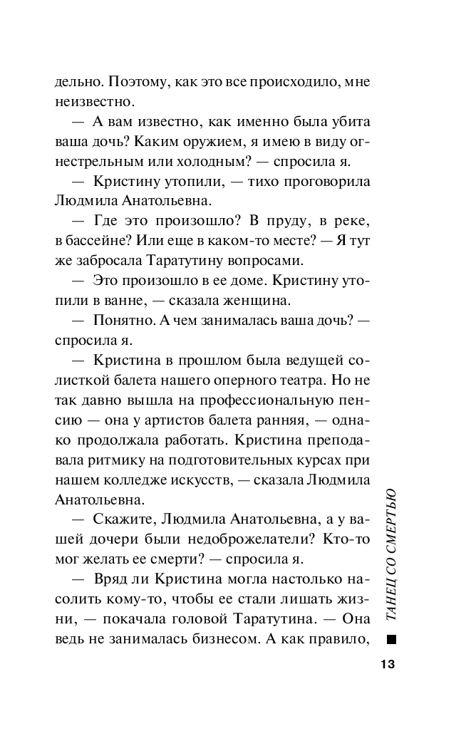 Частный детектив Татьяна Иванова вновь оказывается в центре загадочного дела: звонок от таинственной незнакомки толкает её на расследование шокирующего убийства. Прима-балерина была утоплена в собственной ванне. Но это не единственная тайна – без следа исчезает приемная дочь артистки. Погружаясь в водоворот семейных интриг, Татьяна сталкивается с паутиной грязных секретов. Незадолго до трагической гибели между балериной и её дочерью развернулся настоящий шторм…