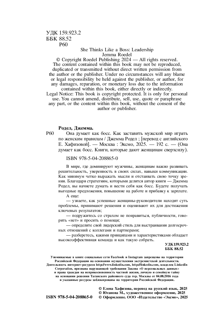 В мире, где доминируют мужчины, женщинам важно развивать решительность, уверенность в своих силах, навыки коммуникации. Как минимум, четко выражать мысли и отстаивать свою точку зрения. Благодаря стратегиям, которыми делится автор книги – Джемма Родел, вы начнете думать и вести себя как босс. Будете получать выгодные предложения, повышение на работе и прибавку к зарплате.