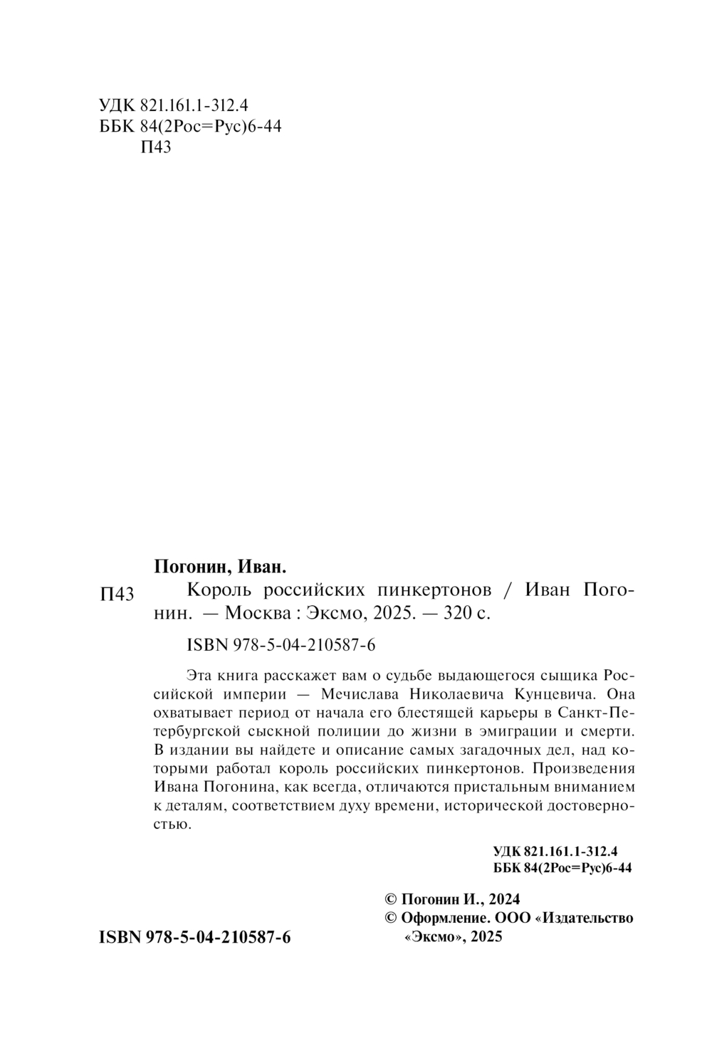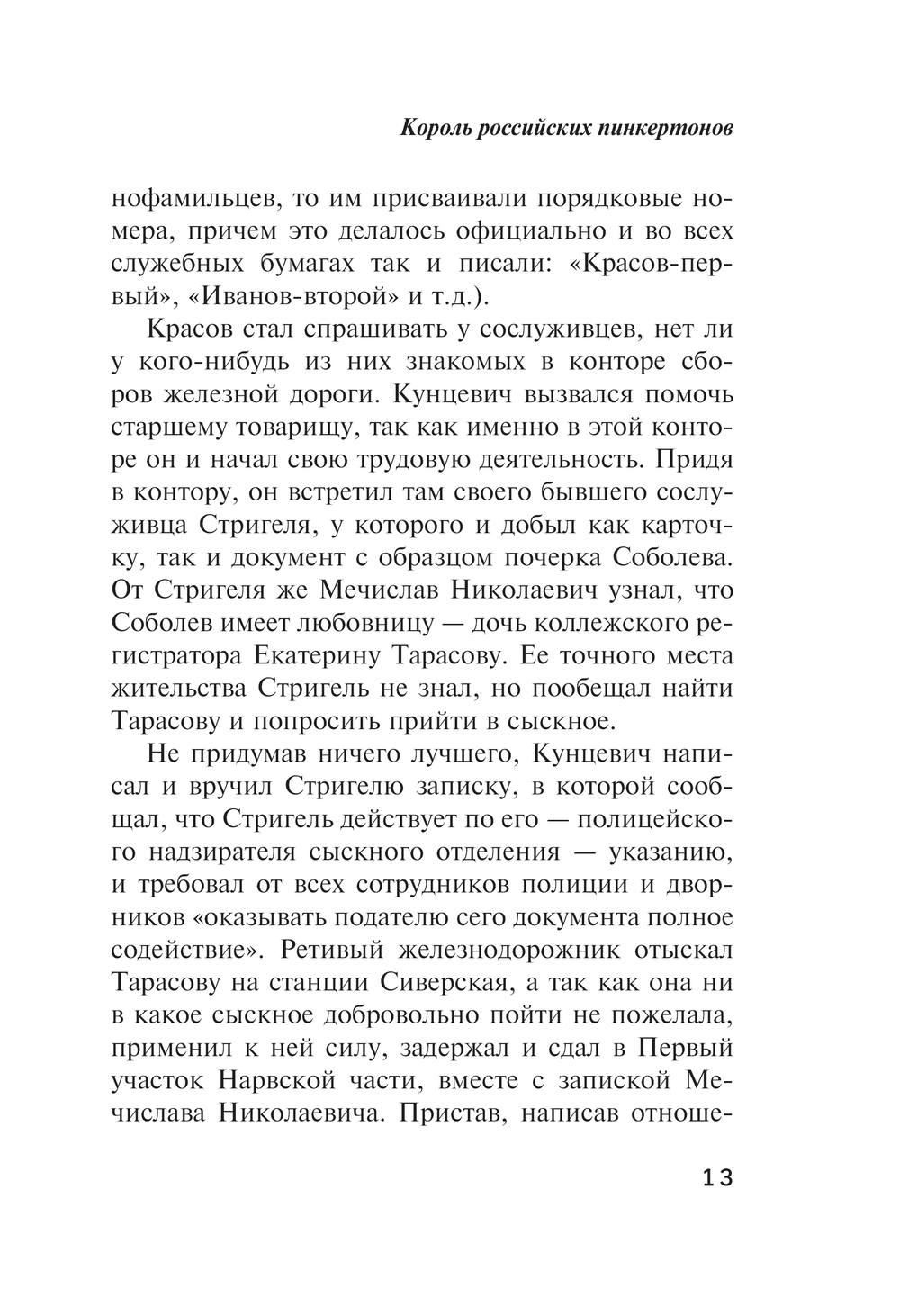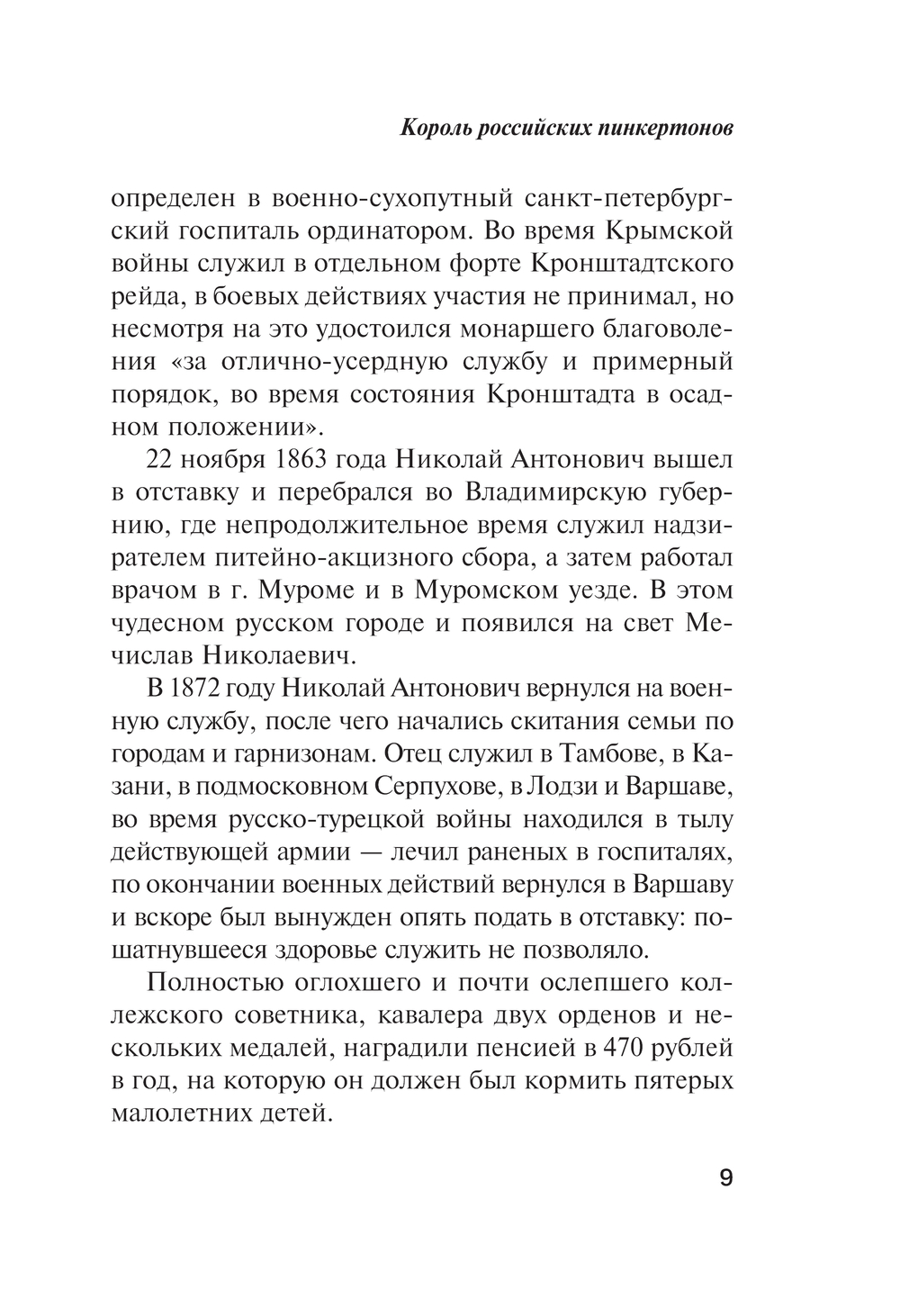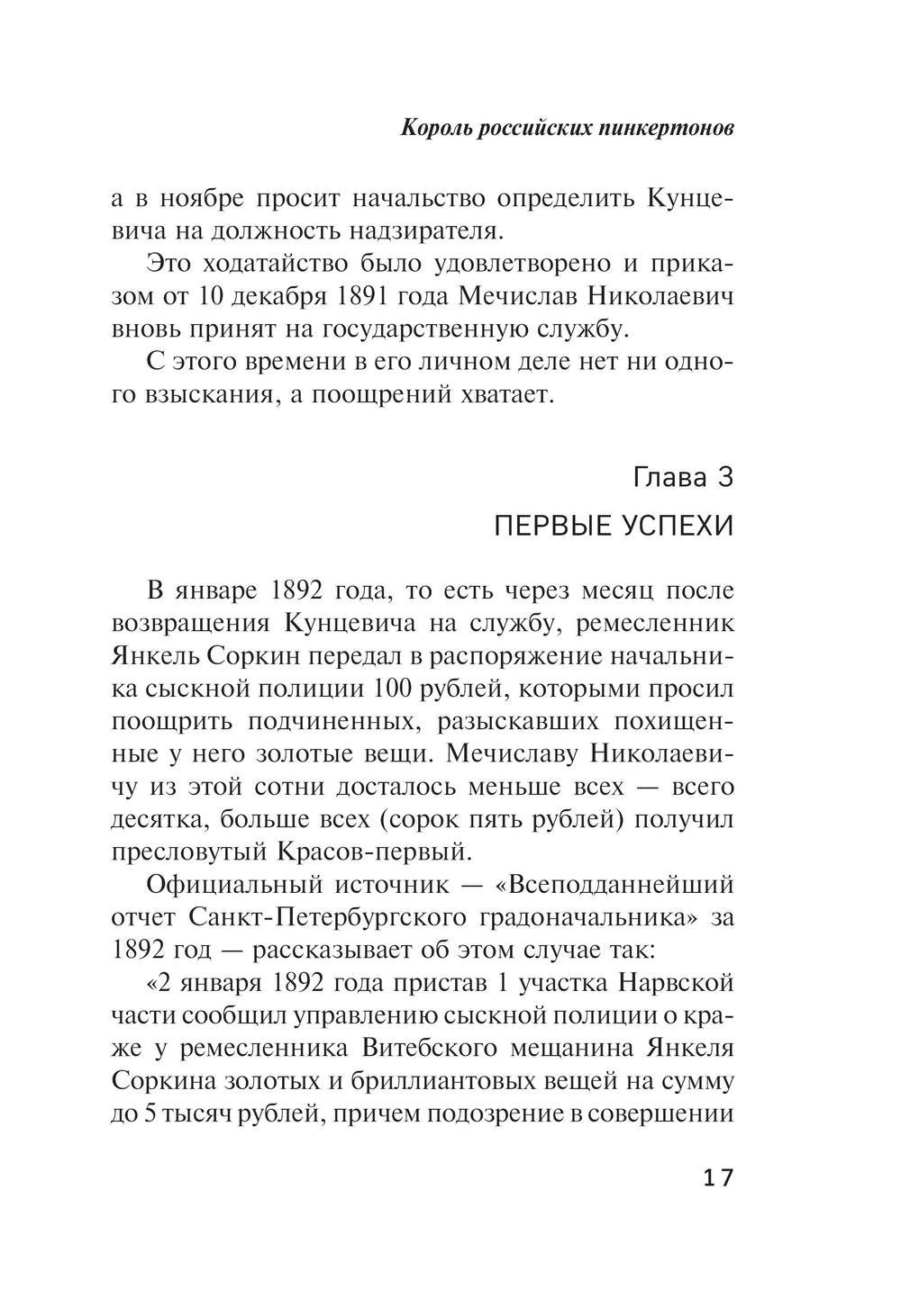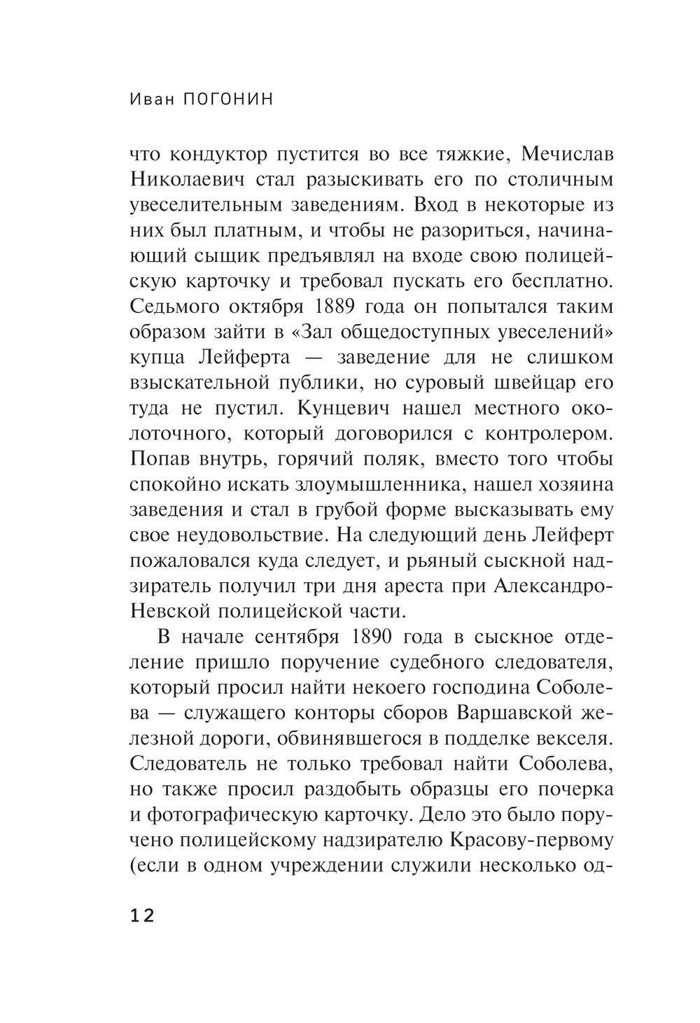 Эта книга расскажет вам о судьбе выдающегося сыщика Российской империи – Мечислава Николаевича Кунцевича. Она охватывает период от начала его блестящей карьеры в Санкт-Петербургской сыскной полиции до жизни в эмиграции и смерти. В издании вы найдете и описание самых загадочных дел, над которыми работал король российских пинкертонов. Произведения Ивана Погонина, как всегда, отличают пристальное внимание к деталям, соответствие духу времени, историческая достоверность.