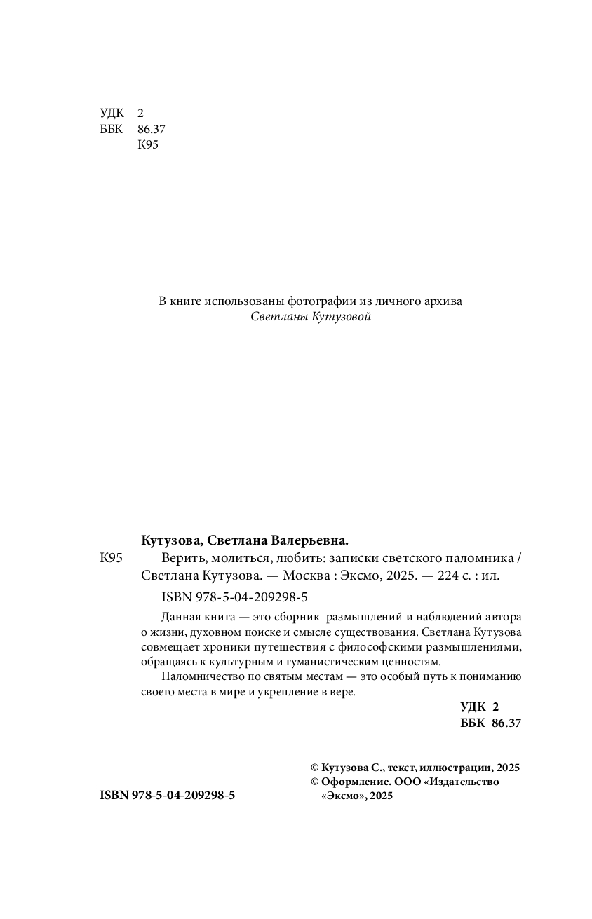 "Записки светского паломника" – размышление и наблюдение автора о жизни, духовном поиске и смысле существования. Светлана Кутузова совмещает хроники путешествия с философскими размышлениями, обращаясь к культурным, гуманистическим и религиозным ценностям. Паломничество по святым местам – это особый путь к пониманию своего места в мире и укрепление в вере.