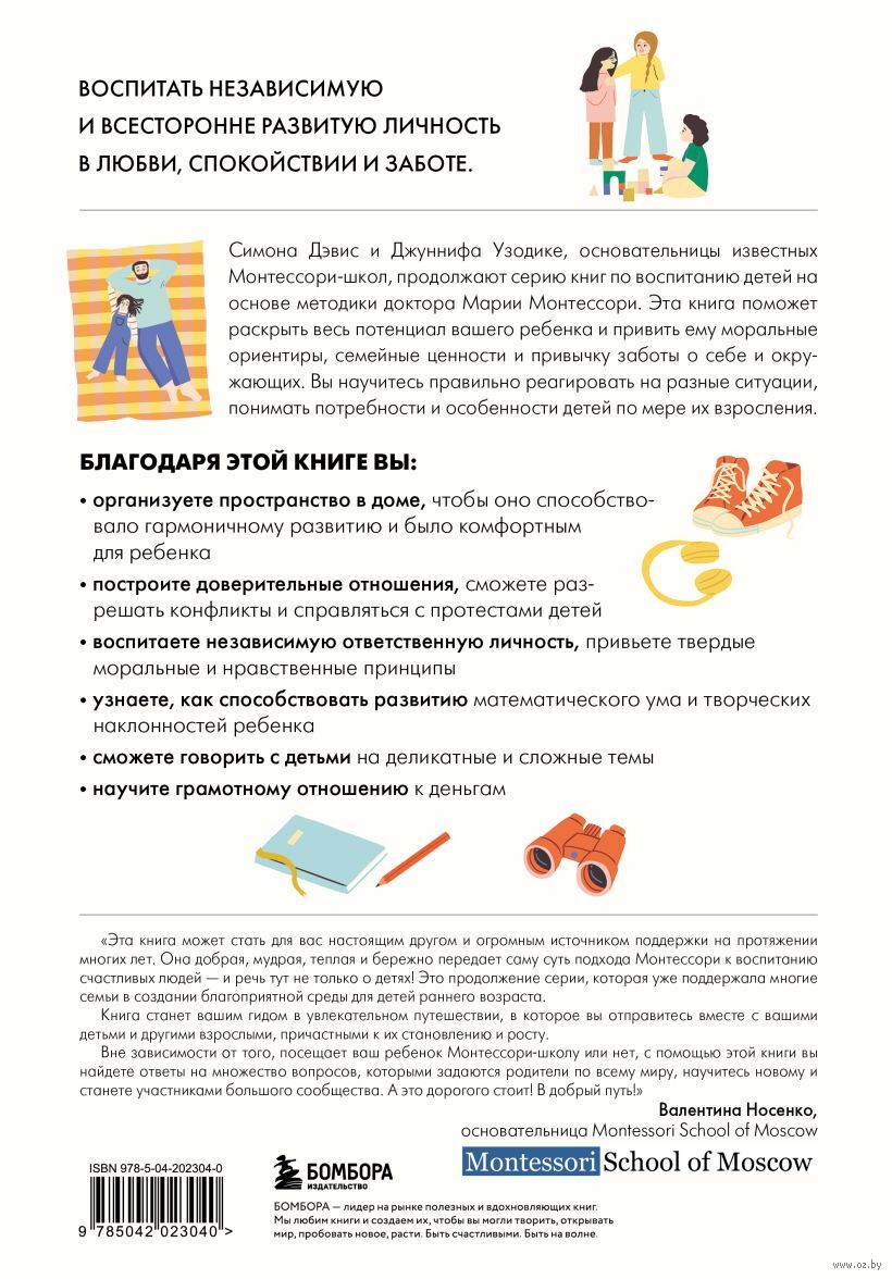 Симона Дэвис и Джуннифа Узодике, основательницы известных Монтессори-школ, рассказывают мамам и папам, как, основываясь на принципах Марии Монтессори, воспитать гармоничную и всесторонне развитую личность в любви и заботе. Книга поможет раскрыть весь потенциал вашего ребенка и привить ему моральные ориентиры, семейные ценности и привычку заботы о себе и окружающих. Вы узнаете, как наблюдать за развитием и правильно реагировать на разные ситуации, понимать потребности и особенности детей по мере их взросления, разберетесь, когда стоит помогать, а когда нужно дать ему решать самому.