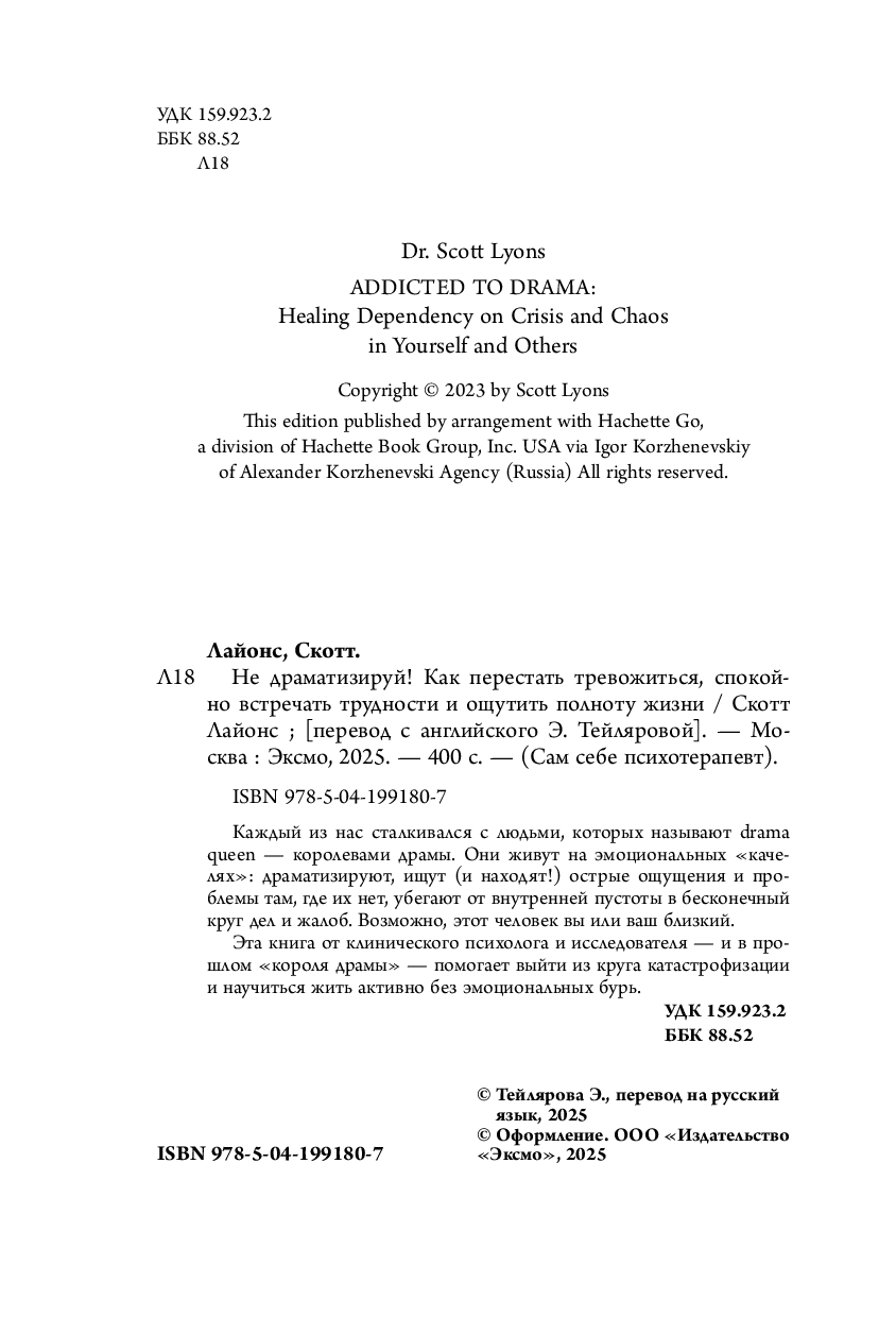 | Название в оригинале | Addicted To Drama: Healing Dependency On Crisis And Chaos In Yourself And Others |