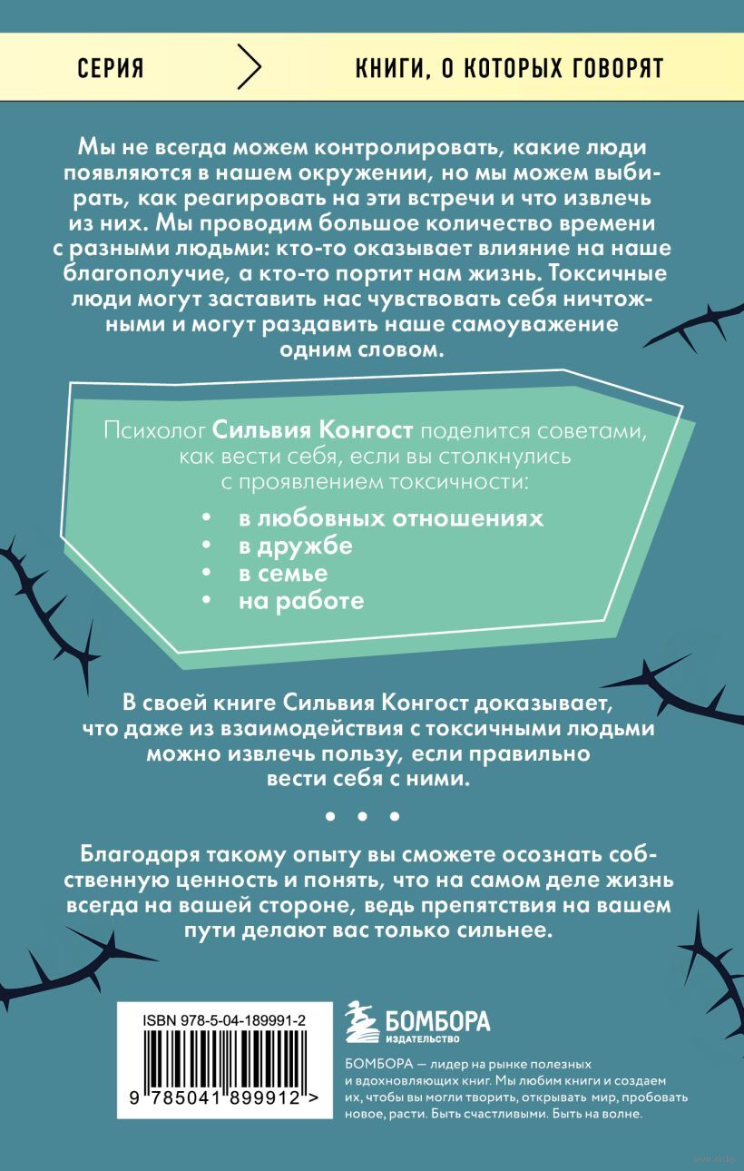 В своей книге Сильвия Конгост доказывает, что даже из взаимодействия с токсичными людьми можно извлечь пользу, если правильно вести себя с ними. Благодаря такому опыту вы сможете осознать собственную ценность и понять, что на самом деле жизнь всегда на вашей стороне, ведь препятствия на вашем пути делают вас только сильнее.