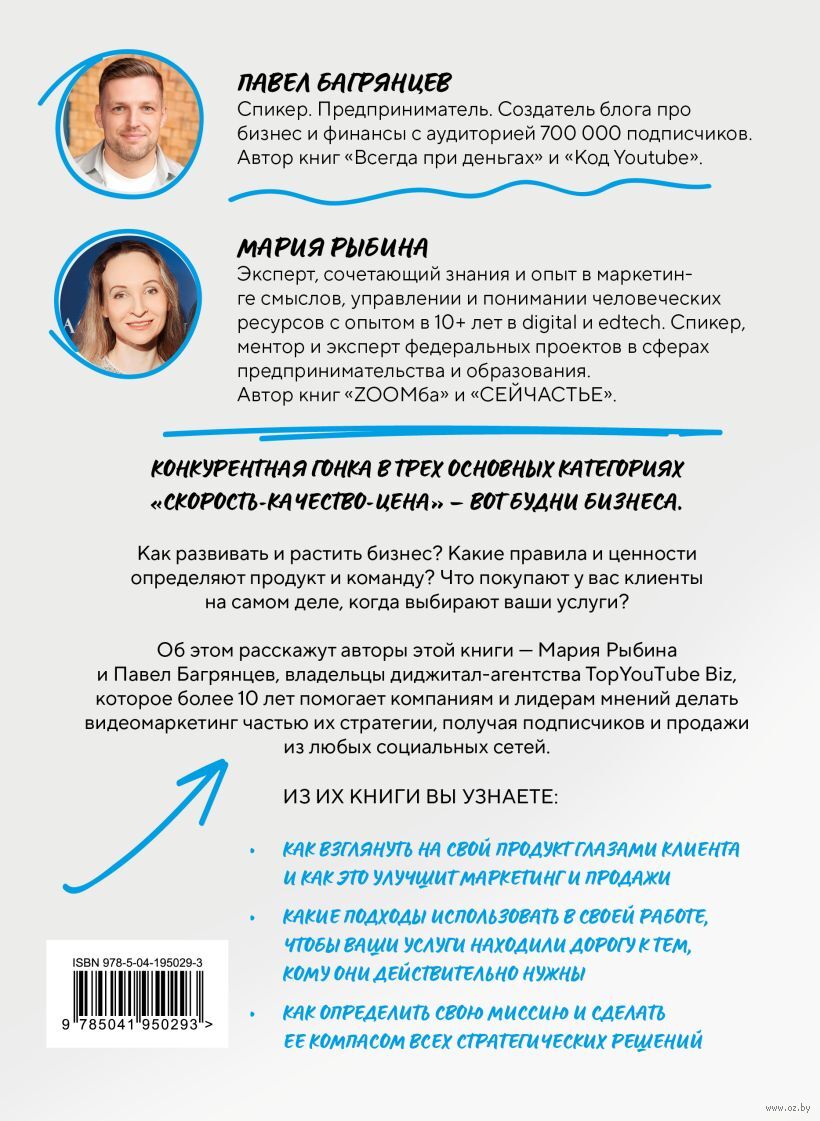 Об этом рассказывают авторы этой книги – Мария Рыбина и Павел Багрянцев, владельцы диджитал-агентства TopYouТube Biz, которое более 10 лет помогает компаниям и лидерам мнений делать видеомаркетинг частью их стратегии, получая подписчиков и продажи из любых социальных сетей.