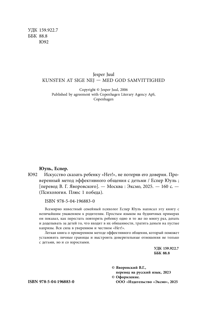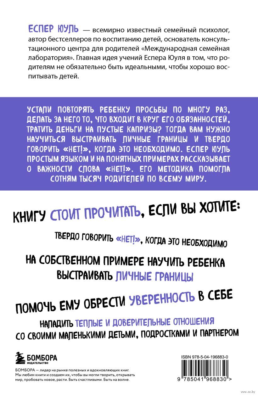 Всемирно известный семейный психолог Еспер Юуль написал эту книгу с величайшим уважением к родителям. Простым языком на будничных примерах он показал, как перестать повторять ребенку одно и то же по многу раз, делать и доделывать за детей то, что входит в их обязанности, тратить деньги на пустые капризы. Вся сила в уверенном и честном "Нет!".