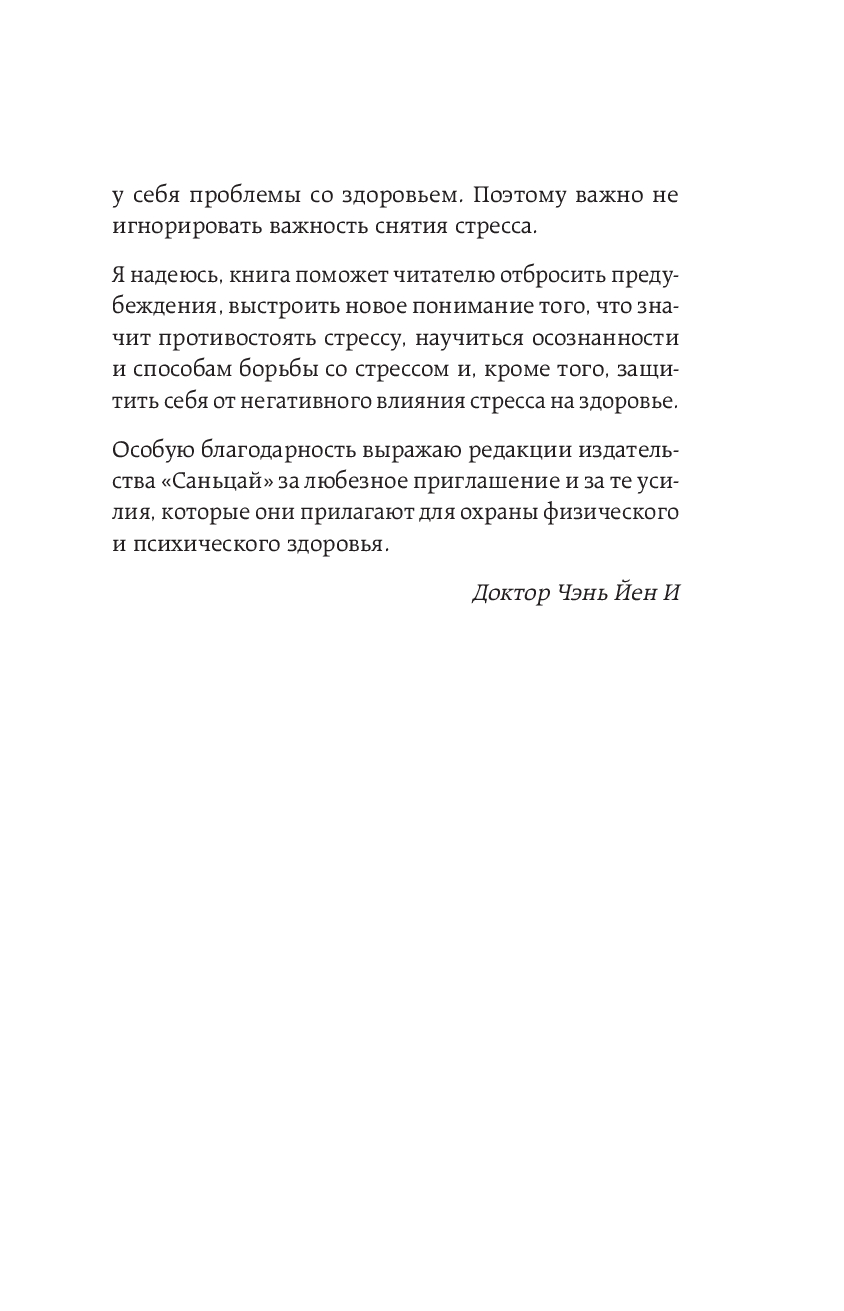 Связь стресса с некоторыми заболеваниями может быть неочевидна. Однако, как мы видим из историй, рассказанных автором, отрицать ее невозможно. Психиатр Йен Чен делится своим многолетним опытом общения с пациентами, на примере доказывая, что нервная система имеет огромное влияние на общее здоровье организма. Стресс и набор веса. Стресс и ночные кошмары. Стресс и необъяснимое чувство страха. Автор устанавливает, на первый взгляд, неочевидные связи и дает советы о том, как избавиться от первопричины многих заболеваний. Проанализировав вашу жизнь и оценив уровень ежедневного стресса, вы сможете правильно и наиболее эффективно позаботиться о своем здоровье.