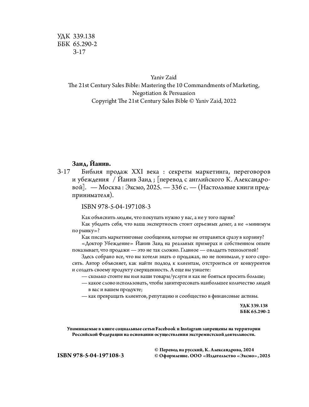 | Название в оригинале | The 21st Century Sales Bible: Mastering the 10 Commandments of Marketing, Negotiation & Persuasion |