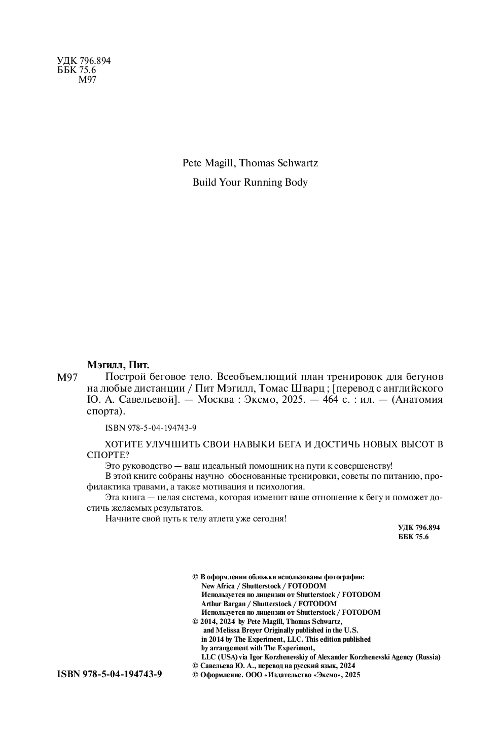 В этой книге собраны научно обоснованные тренировки, советы по питанию, профилактика трав, а также мотивация и психология.