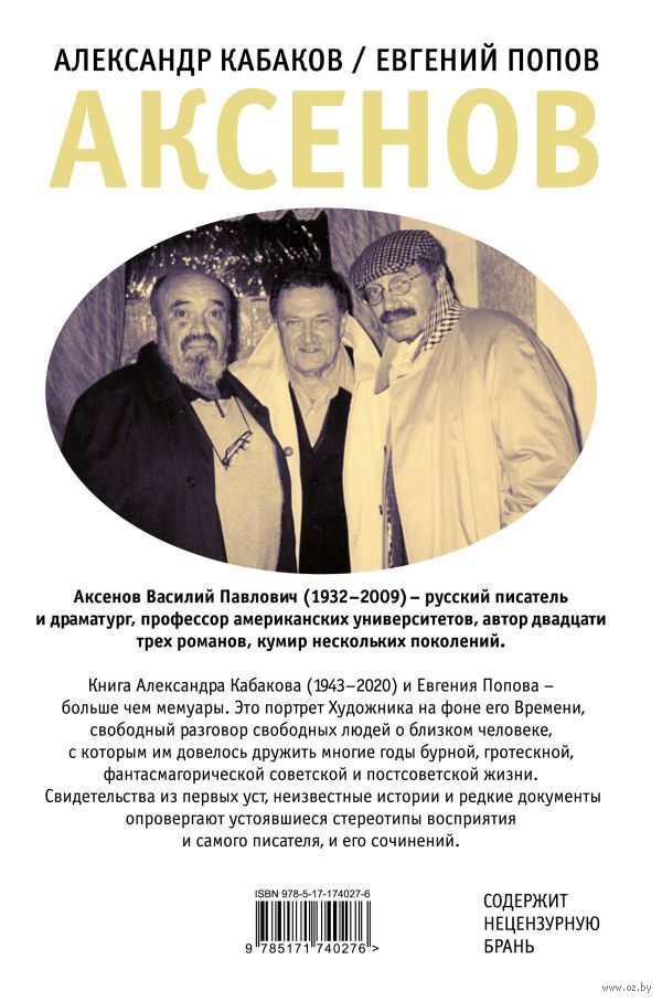 Книга "Аксенов" Александра Кабакова (1943-2020) и Евгения Попова – больше чем мемуары. Это портрет Художника на фоне его Времени, свободный разговор свободных людей о близком человеке, с которым им довелось дружить многие годы бурной, гротескной, фантасмагорической советской и постсоветской жизни. Свидетельства из первых уст, неизвестные истории и редкие документы опровергают устоявшиеся стереотипы восприятия и самого писателя, и его сочинений.