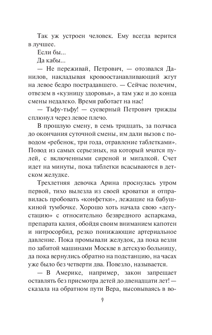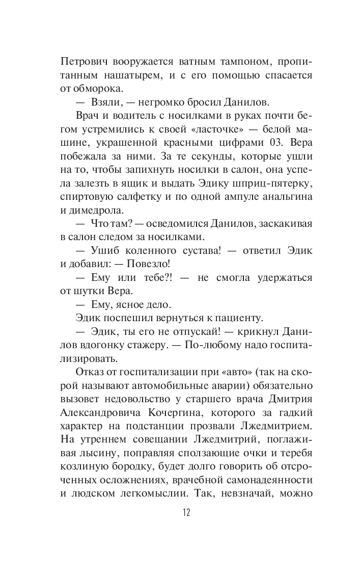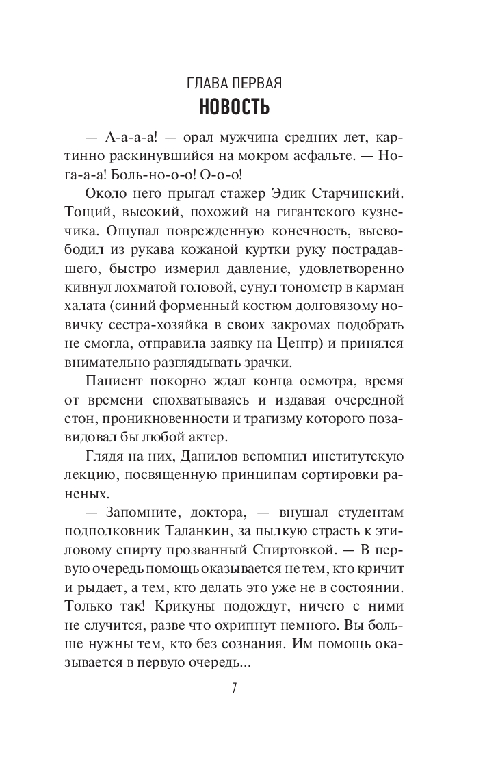 Владимир Данилов семь лет работает врачом Скорой помощи. Он циник и негодяй, он груб с пациентами и любит черный юмор. Отличный врач. Поверьте, если вы не знаете, что такое будни обычной подстанции, вы ничего не знаете об этой жизни. Ложные вызовы, сумасшедшие пациенты, неожиданные роды, автомобильные аварии, бытовуха, случайные трупы, бесчисленное количество спасенных жизней… Это действительно страшно, и это действительно весело. Это жизнь. Роман написал реальный врач Скорой помощи, вот только на той подстанции он больше не работает. Правду читать безумно интересно, если только книга не о тебе… Хотите содрогаться от ужаса, брезгливо морщиться, сдерживать слезы, негодовать и безудержно хохотать? Тогда вам в Скорую помощь!