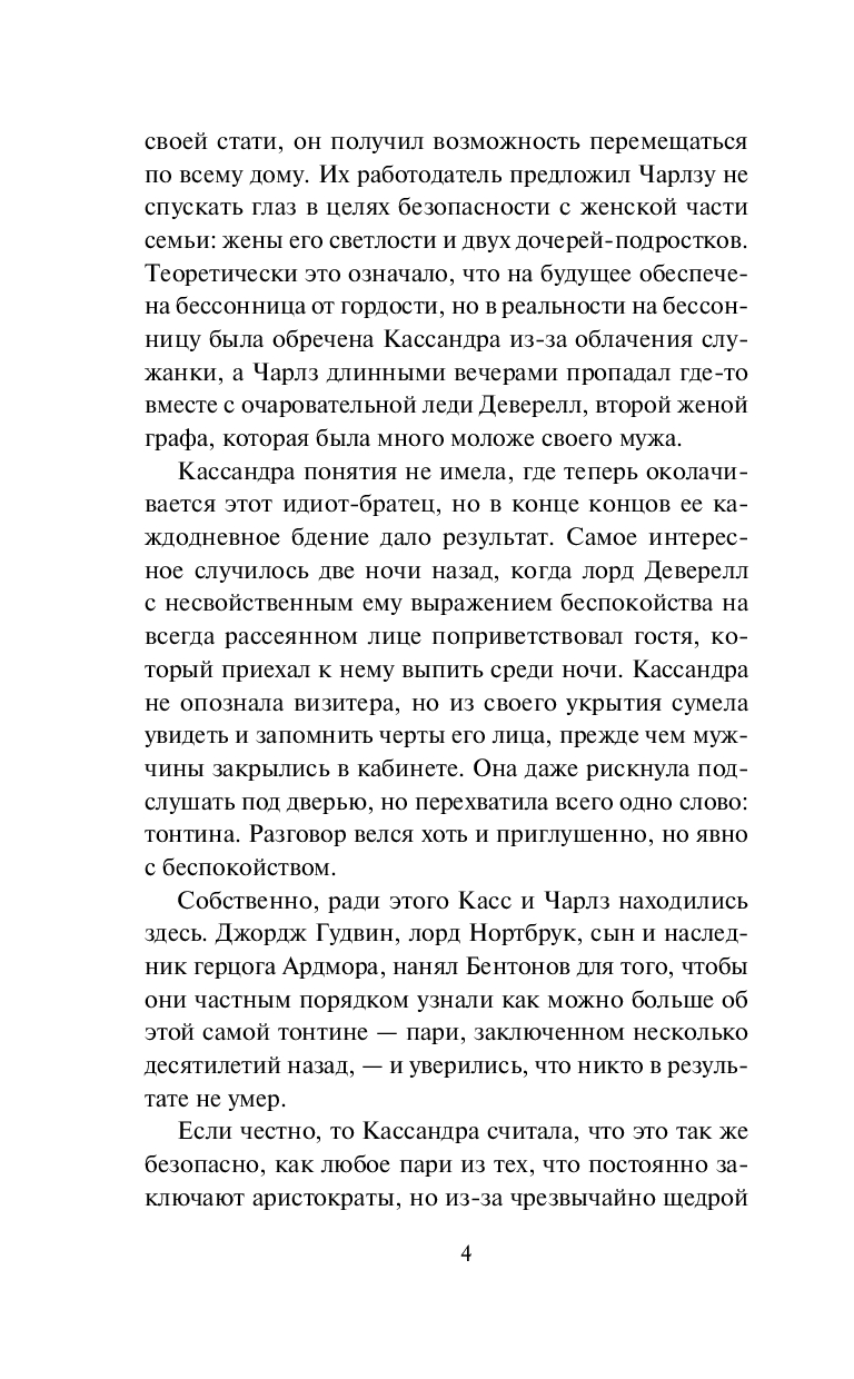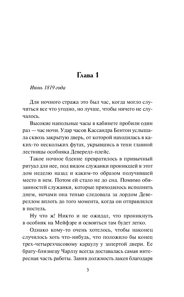 Умная и проницательная Кассандра Бентон с детства мечтала стать служителем закона, прямо как ее брат-близнец Чарлз. Поскольку в Англии эпохи Регентства полицейское дело было недоступно женщинам, Касс приходилось помогать брату с его расследованиями из-за кулис. Однажды Бентоны выручили семью Нортбрук, и маркиз Джордж Гудвин так и не забыл красавицу-следователя.