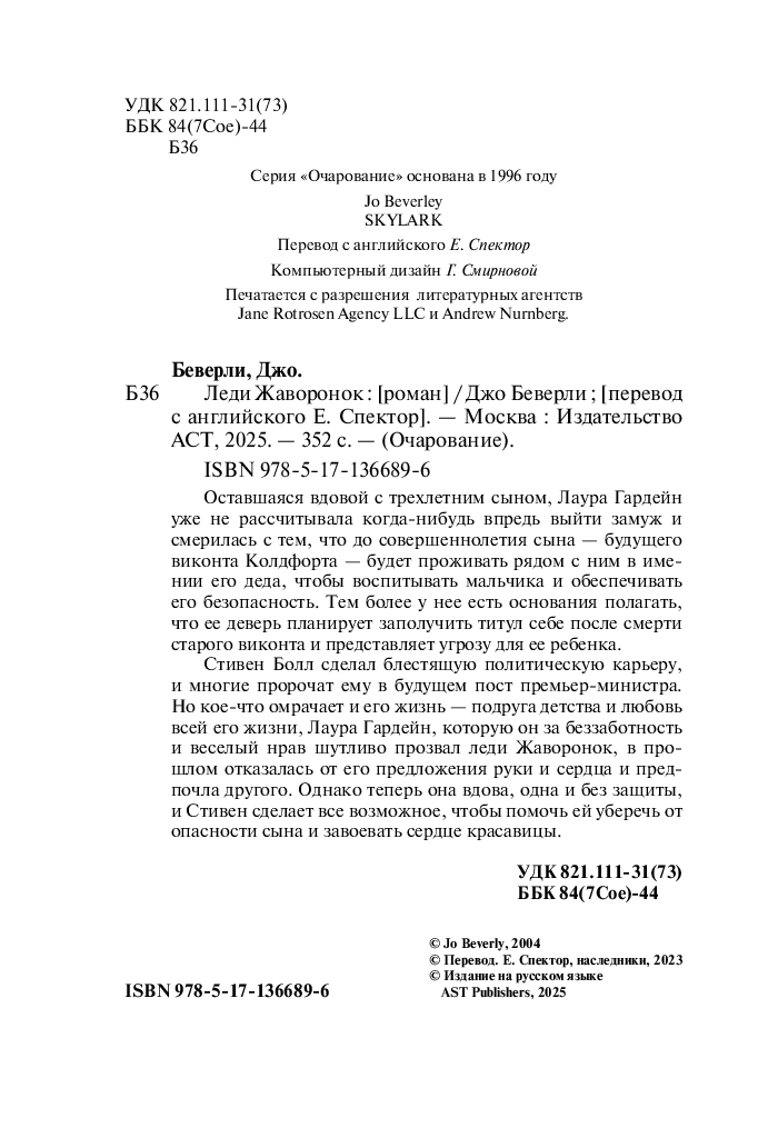 Стивен Болл сделал блестящую политическую карьеру, и многие пророчат ему в будущем пост премьер-министра. Но кое-что омрачает и его жизнь – подруга детства и любовь всей его жизни, Лаура Гардейн, которую он за беззаботность и веселый нрав шутливо прозвал леди Жаворонок, в прошлом отказалась от его предложения руки и сердца и предпочла другого. Однако теперь она вдова, одна и без защиты, и Стивен сделает все возможное, чтобы помочь ей уберечь от опасности сына и завоевать сердце красавицы.