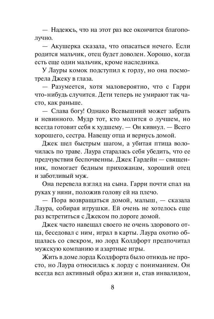 Оставшаяся вдовой с трехлетним сыном, Лаура Гардейн уже не рассчитывала когда-нибудь впредь выйти замуж и смерилась с тем, что до совершеннолетия сына – будущего виконта Колдфорта – будет проживать рядом с ним в имении его деда, чтобы воспитывать мальчика и обеспечивать его безопасность. Тем более у нее есть основания полагать, что ее деверь планирует заполучить титул себе после смерти старого виконта и представляет угрозу для ее ребенка.